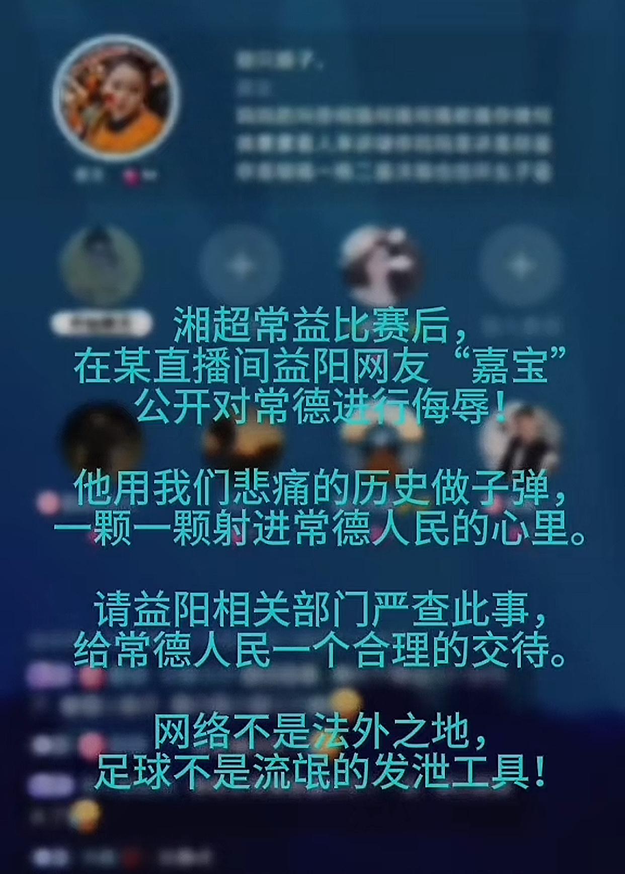 益阳女球迷“嘉宝”湘超赛后在直播间用“日本人的后代”羞辱常德人这事如果是真的,那应该算是地域黑里最不能原谅的一种,原始音频里全程在说方言但确实可以听到日本的称谓,而且评论区也有人劝这位“嘉宝”不要人身攻击掉益阳档次,常德人的气愤应该不是空穴来风,这位球迷的账号现在已经无法搜到,用民族的伤痛泄私愤,不是无知就是忘记历史。