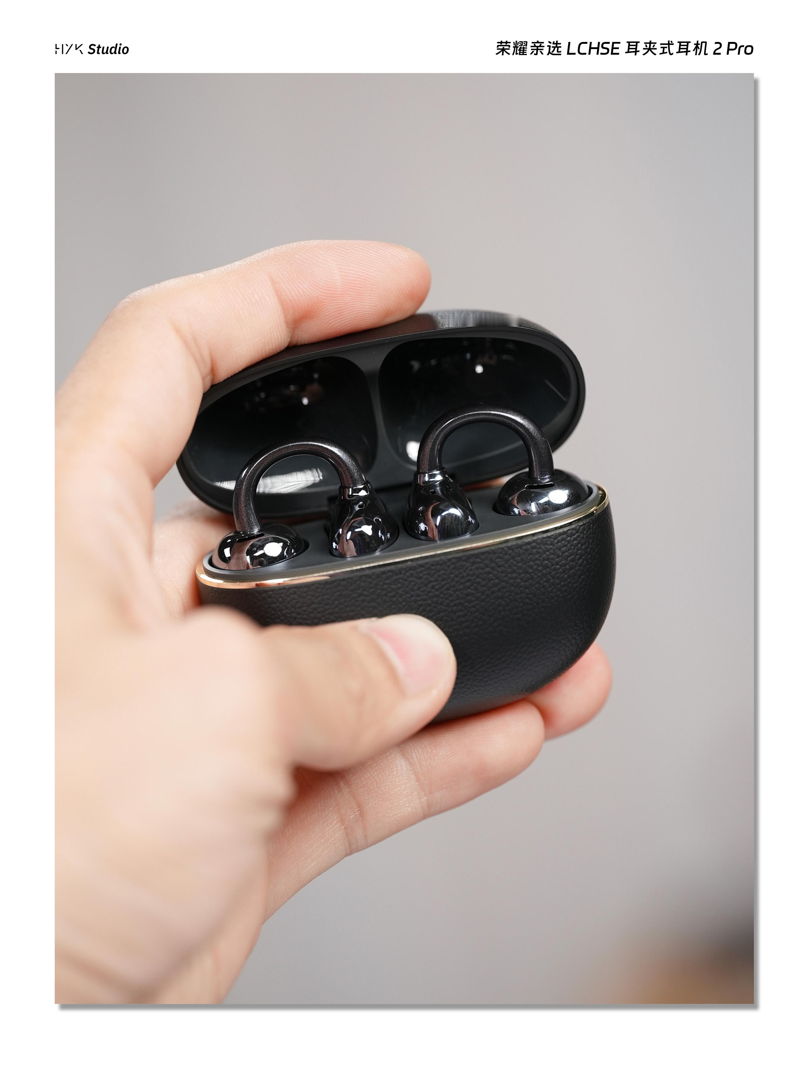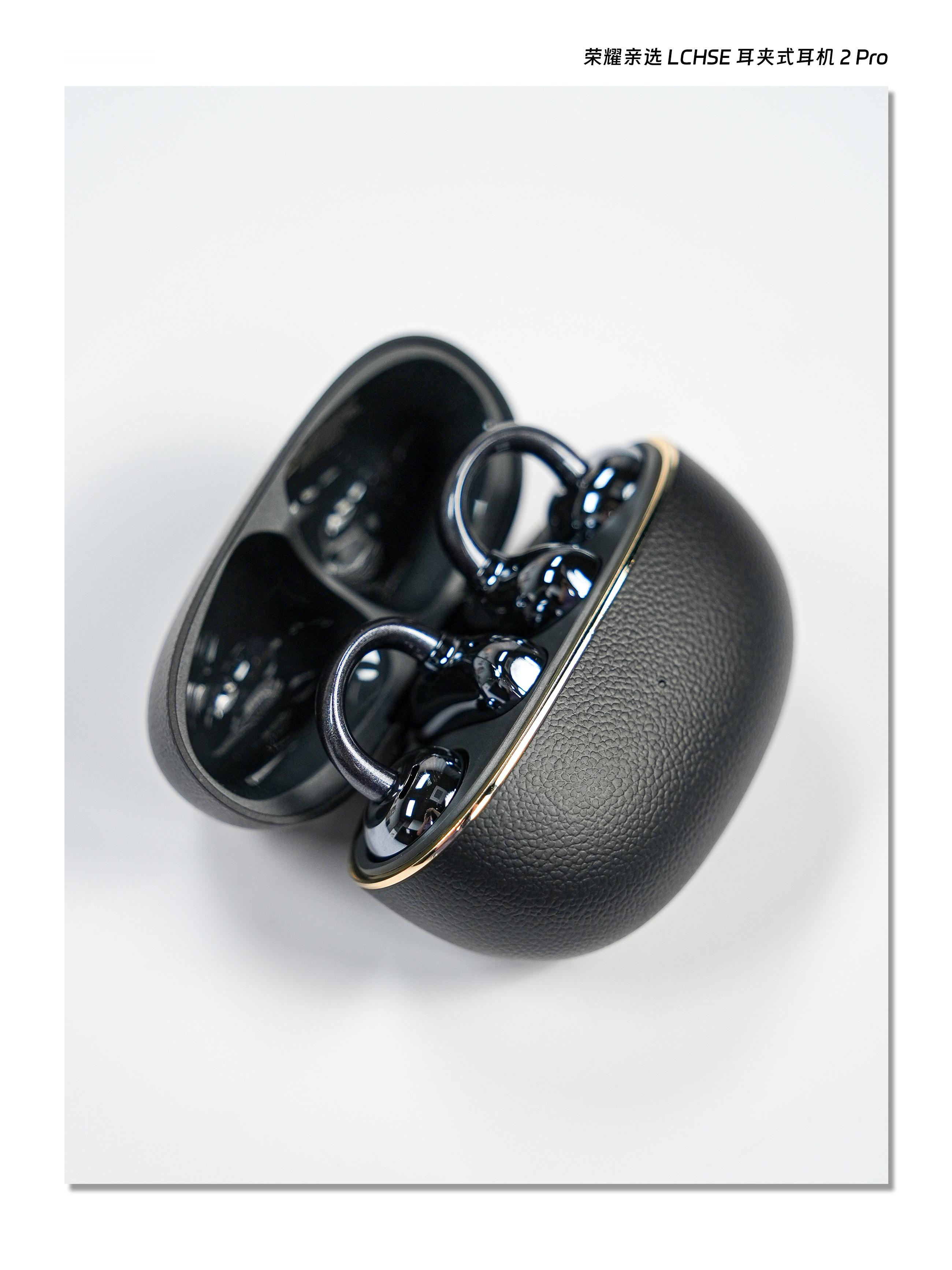 |荣耀耳夹式耳机 2 Pro这款是典雅黑配色,黑色耳机仓,开合处有一圈金色装饰,整体低调又好看。耳机仓的表面是一种类素皮纹,耳机则是采用亮面处理。这一代外观上还有一个大优化,那就是舒适钛拱桥2.0,这个优化后的拱桥,柔软度、舒适性较前代来说都提升了不少。怎么样,大家喜欢这款耳机吗?