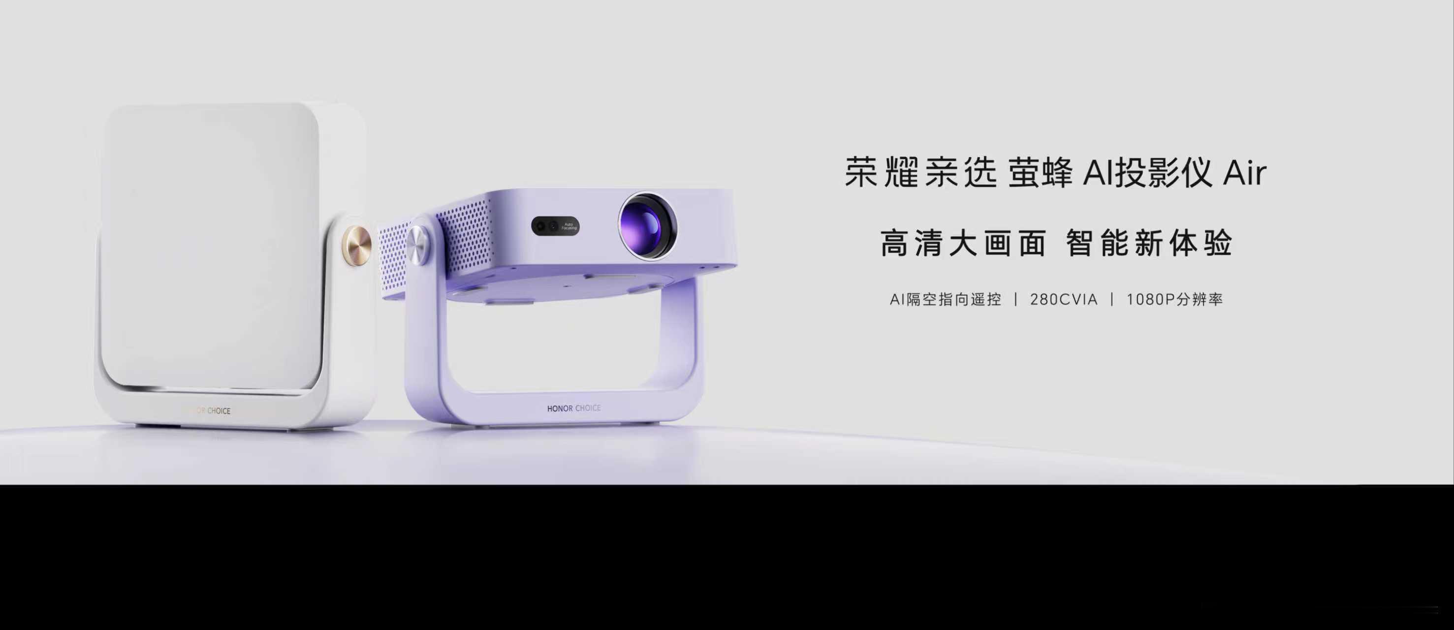荣耀亲选萤蜂Al投影仪Air,拥有超高亮度和对比度,更亮更清晰,搭载AI触控黑科技,也可以像平板一样操控,点得准,更玩得爽!11月27日10:00首销价格599元,国补到手价499.8元。