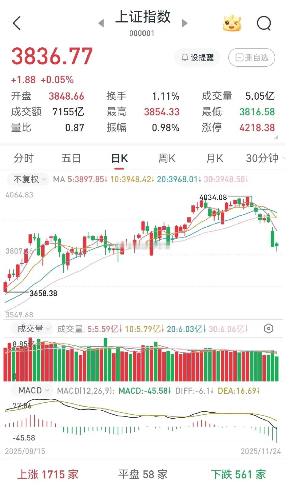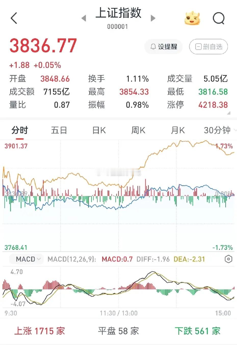 今日大盘的反弹态势,明日能否延续?今日大盘指数仅上扬0.05%,但个股却呈现普涨格局。数据表明,两市超4200只股票上涨,其中涨幅逾3%的个股多达1200余只。盘后不少投资者觉得,今日大盘收出的这根带上下影线的假阴线,有止跌企稳的迹象,明日大盘大概率会延续今日涨势。我的看法是:今日这根假阴线,并不具备止跌企稳的特性,很可能在此位置构筑下跌中继形态。1、从分时图分析,今日上午大盘高开回落,随后窄幅震荡。午后券商股突然异动,大盘指数有一波稍具力度的拉升,但明显受阻于3850点阻力位。因接盘量能不足,尾盘指数险些收绿。所以,我认为今日大盘上涨,是对短期跌幅过大的修复,且这种修复仅减缓了大盘指数下跌速率,未改变其下跌趋势。2、从技术层面分析,今日大盘收出的小阴线,处于周五长阴末端,虽带有20个点下影线,但距开盘指数仍差12个点。这表明今日大盘指数的反弹,依旧弱势。3、从成交量来看,今日两市成交1.72万亿,较上一交易日缩减2400多亿。按常理,今日个股普涨,成交量理应放大。但今日两市量能不增反减,结合分时走势两次上拉两次回落的情况,我认为今日大盘反弹时,多方力量并不强劲。综上,我认为今日大盘的反弹明日难以持续。即便明日早盘大盘指数上涨,因成交量跟不上,最终也会冲高回落。我认为大盘较有力度的反弹,只会在指数跌破3800点之后出现。以上为个人观点,仅供参考。