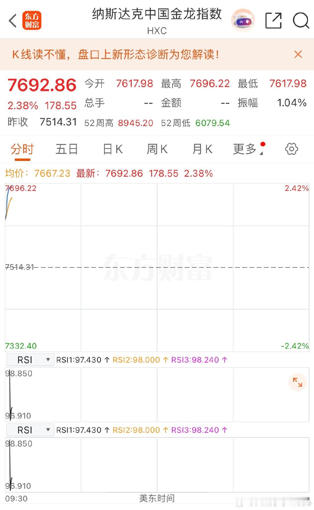 【】11月24日,周一美股三大股指集体高开,道琼斯指数涨0.19%,标普500指数涨0.60%,纳斯达克综合指数涨1.00%。纳斯达克中国金龙指数涨超2.0%,最新报7670.6点。阿里巴巴涨超3%,百度涨超5%,爱奇艺涨超3%。(财联社)
