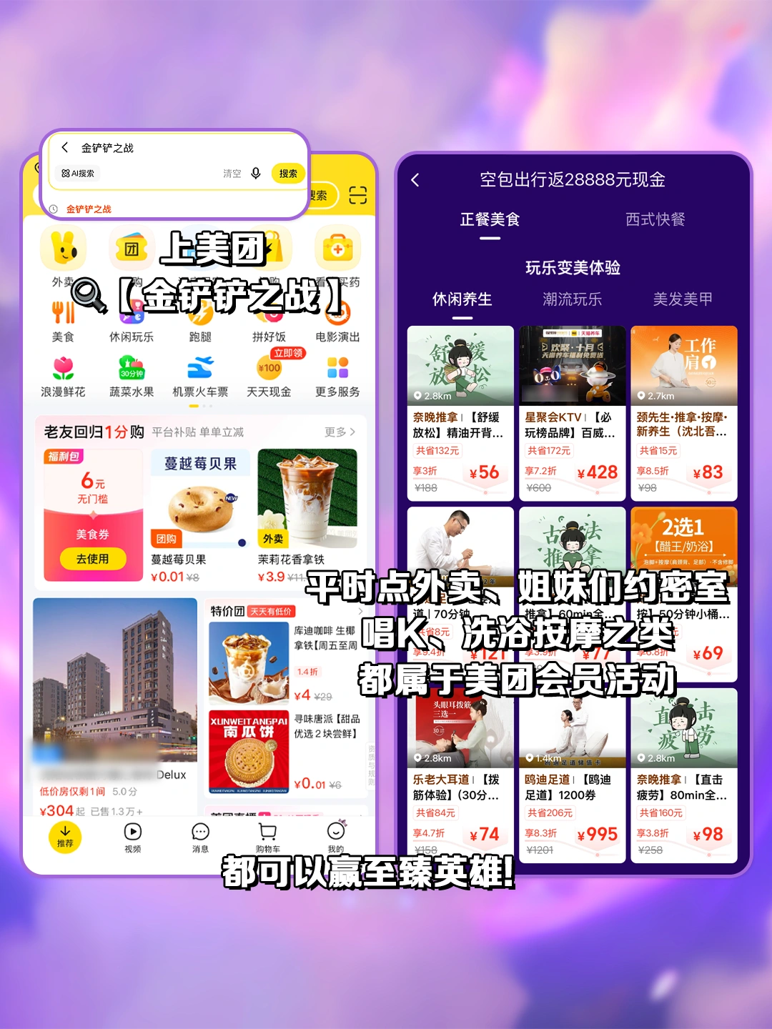 像是平时点外卖、姐妹们约密室、唱K、洗浴按摩之类都能参加美团会员活动,有几率赢至臻英雄[心心眼R]
