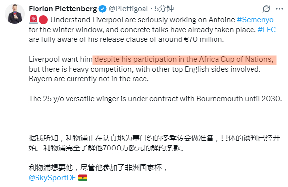更新:利物浦若想在 1 月份签下盖伊,必须斥巨资。尽管不到三个月前他们曾距离完成