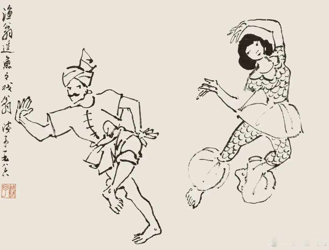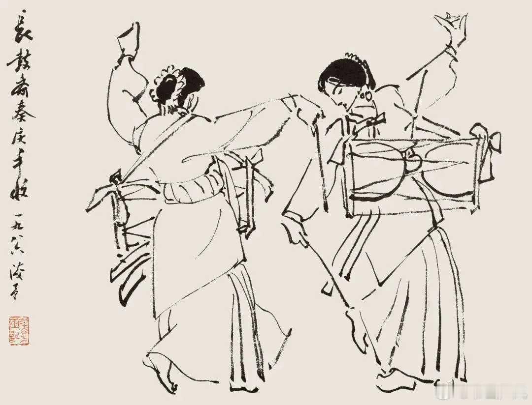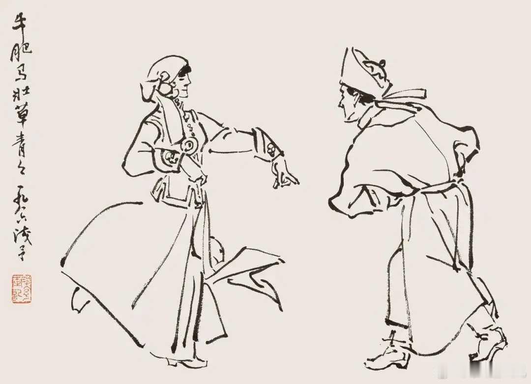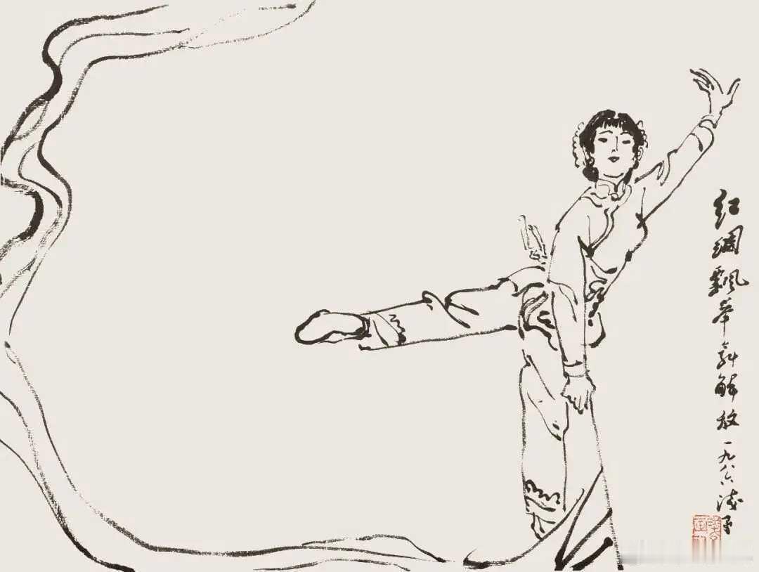 叶浅予白描舞蹈人物。叶浅予,民国时代著名画家、漫画家,中国漫画和生活速写的奠定者,他才华横溢,曾担任过中国画研究院副院长,为我国的绘画事业做出突出贡献。