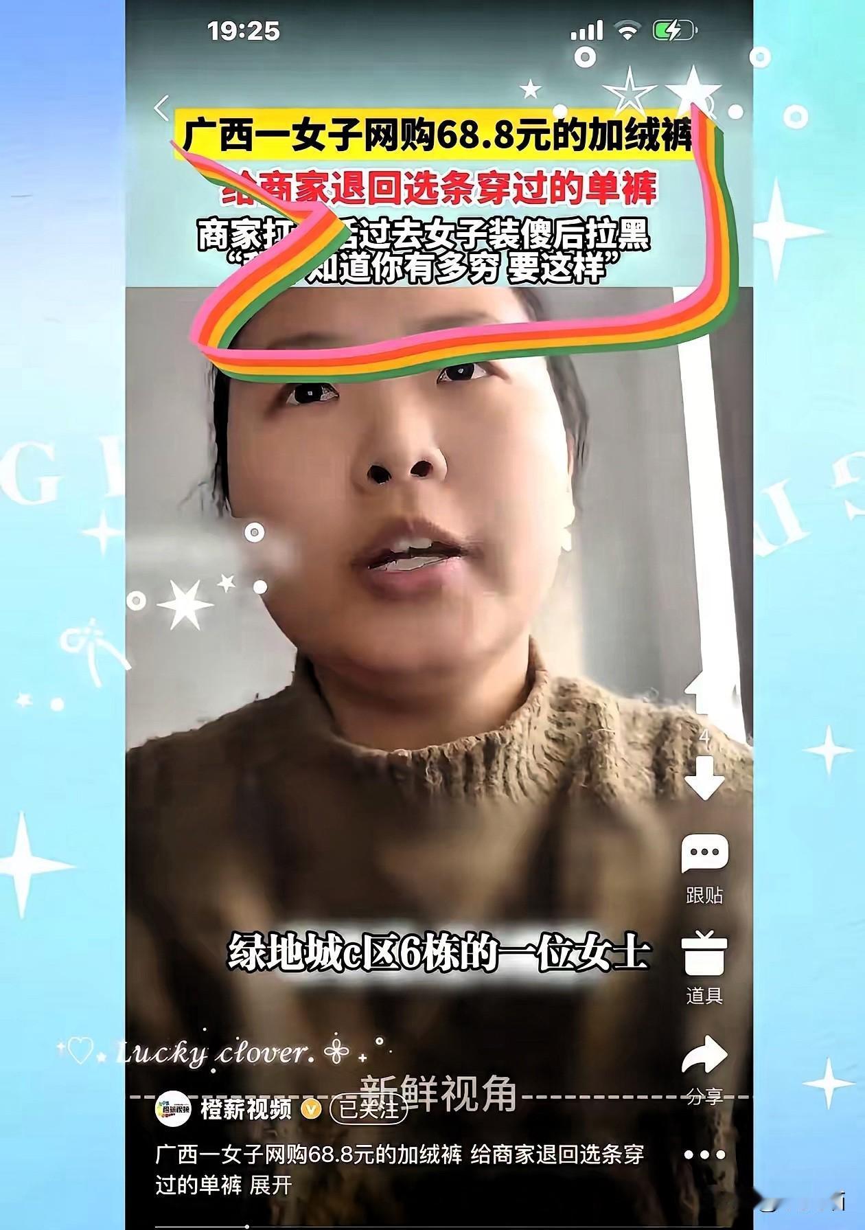 60多块钱就能卖掉的自尊, 到底值不值? 广西这位大姐的操作真是刷新认知, 网购加绒裤留下, 退回去一条穿过的旧单裤, 商家沟通直接拉黑, 算盘打得全网都听见了。 别拿“穷”当借口,这根本不是缺钱,是缺德!60多块钱买不来体面,却能看清一个人的底线,为了点小利把诚信踩在脚下,实在得不偿失。更要说说商家,曝光不良行为能理解,但把小区楼栋号公之于众,是不是也越界了? 你觉得这位大姐和商家的做法,到底谁更不妥?