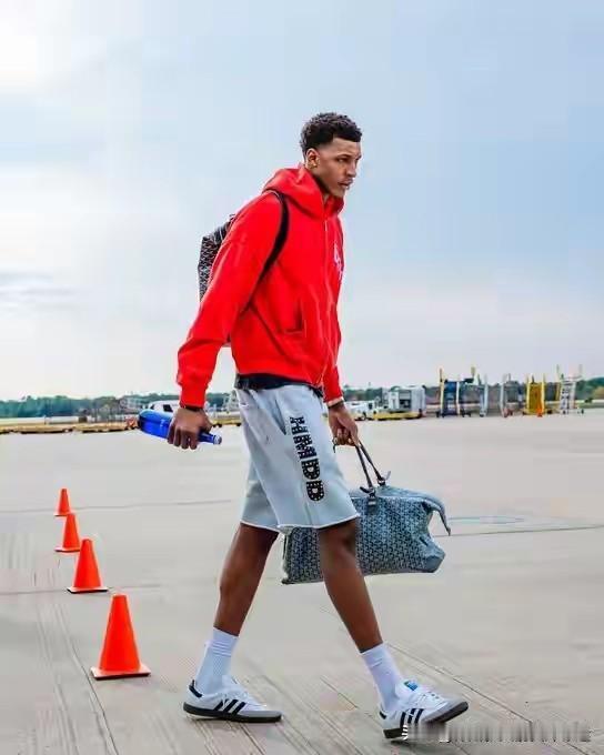 火箭众将登机前往克利夫兰,看着亚当斯穿着拖鞋,不得不说火箭全员属亚当斯最火力大。