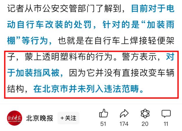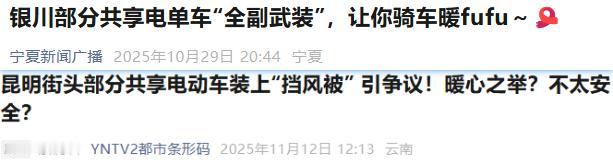 冬季骑电动车出行必须要安装挡风被,没有挡风被的话,出行会非常的寒冷,特别是北方地区。 今天看到一个新闻,在云南昆明共享电动车安装上了挡风被,为车主骑行电动车提供了保暖的作用,另外,在宁夏,共享电动车也安装挡风被。 希望北方的省市,也能够对于电动车挡风被网开一面,允许车主安装,这样出行的时候才不会太冷。 其实早在去年,北京公安交警在接受记者采访时就说了,加装挡风被,并没有直接改变车辆的结构,在北京市并未列入违法的范畴,主要严查的是电动车加装遮阳伞,遮雨棚。而且交警还明确,因为挡风被而导致的交通事故很少。 对于这样的便民管理措施应该全国推广,四季如春的昆明都安装了挡风被,北方地区在禁止安装挡风被,有点说不过去了。