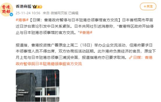 日本共同社刚刚披露消息称,香港特别行政区政府开始停止与日本驻香港总领事馆之间的官方往来。 最先有动静的是教育领域,香港教育局早在 11 月 21 日就证实,原定 12 月 7 日到 13 日派中学生去日本参加 “21 世纪东亚青少年大交流计划” 的行程取消了。 做出这个决定不是随便拍脑袋,而是因为今年年中以来,在日本的中国公民遇袭事件越来越多,政府得确保师生的安全,经过仔细考虑才下的结论,这也是这个交流计划启动以来,香港第一次退出。 紧接着,香港警务部门的高层原本打算去参加日本驻港总领事馆 12 月中旬计划办的活动,后来也明确表示不去了,理由很直接,就是现在中日关系恶化,这个时候出席不合适。 再看经济交流方面,变动也不小。香港投资推广署本来定在 11 月 18 日办一场日港企业交流活动,可临到跟前,香港方面提出不让日本领事馆的人参加,最后双方商量着把活动延期了。 更受关注的是,特区政府负责经济政策的高官,原本和日本驻港总领事三浦润约好 12 月上旬见面,现在也被香港政府通知取消了。这些一桩桩具体的取消和延期,显然不是孤立事件,共同社的报道不过是把这些零散的变化汇总成了一个明确的信号。 大家肯定好奇,好好的官方往来为啥说停就停?答案在香港特首李家超 11 月 24 日的表态里能找到。他说日本领导人最近发表了极其错误的涉台言论,这不光是伤害了中国人的感情,更是在挑战战后的国际秩序,所有中国人都不会同意。 这种恶劣言论直接把中日之间的交流气氛搞坏了,香港作为中国的特别行政区,自然要支持国家的对日外交政策,做出相应的调整也在情理之中。 而且不只是官方往来收紧,香港保安局早在 11 月 15 日就更新了外游警示网页,提醒要去日本或者已经在日本的港人多留心安全,连航空公司都开始给去日本的旅客提供调整行程的方便。 有意思的是,民间层面也出现了联动反应,日本人气乐队 “柚子” 11 月 22 日宣布取消原定 12 月在香港、上海、台北的亚洲巡演,给出的理由是 “不可抗力的各种原因”,虽然没明说,但结合当下的局势,很难不让人把这和官方往来的变化联系起来。 其实从这些细节能看出来,香港停止官方往来的决定不是突然冒出来的,而是先从具体活动、具体行程开始调整,一步步推进的,每一步都扣着国家立场和港人安全这两个关键点。 李家超也强调,特区政府会一直盯着事态发展,所有安排都得符合国家尊严和港人利益,还会跟着国家的立场和政策随时调整。 说到底,官方往来的暂停本质上是对错误言论和恶劣氛围的回应,安全警示、行程调整这些动作,都是在为港人利益托底。这种变化会持续多久?后续还会有哪些调整?估计得看日方接下来的态度。 那么,你觉得香港这次的应对合理吗? 欢迎在评论区说说你的看法。
