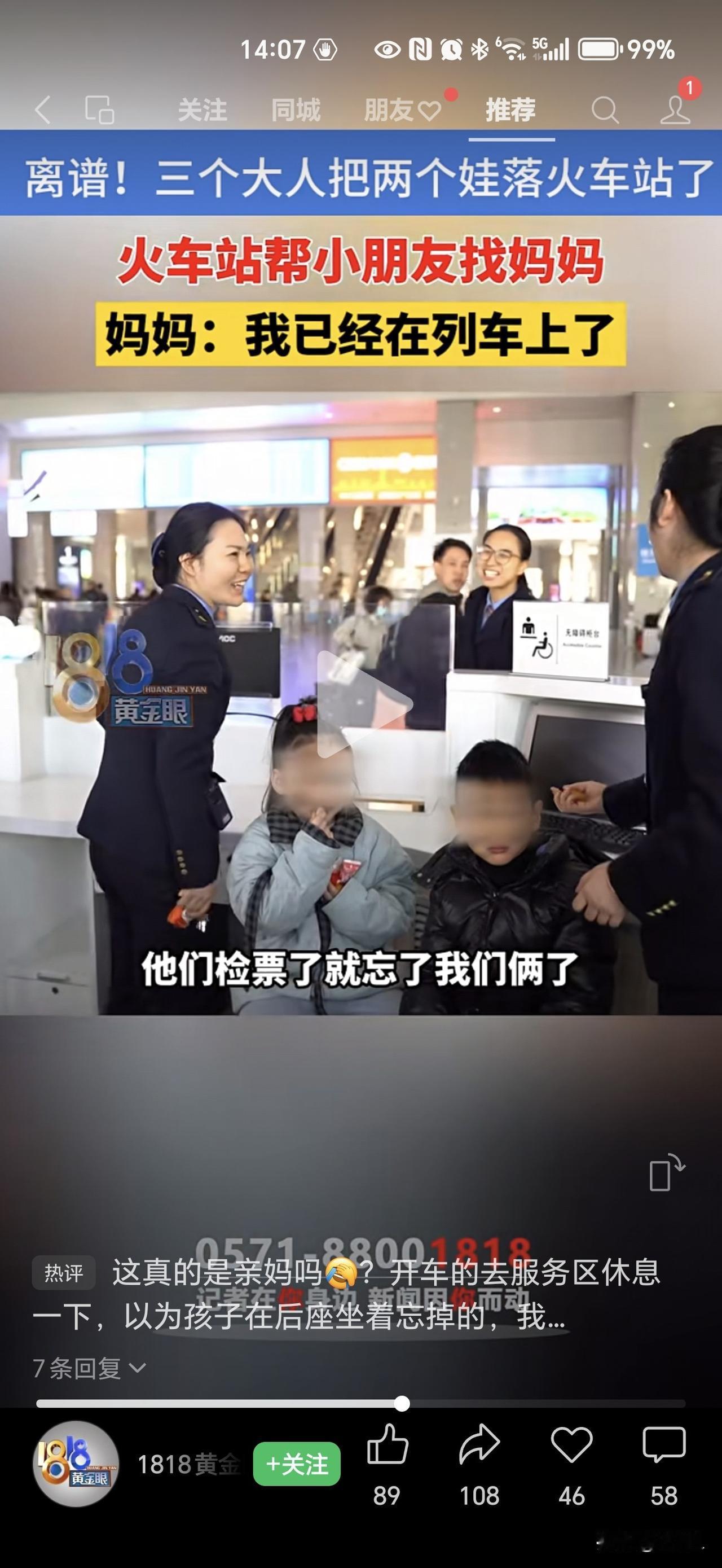 衢州火车站“丢娃”乌龙:大人全员上车,娃精准“寄存”服务站!网友:这届家长太费娃! 近日,在浙江衢州火车站,发生了一起令人哭笑不得的“家长忘娃”事件。 因为浙江各地的中小学纷纷开启了快乐的秋假时光,不少家长就开始了带娃错峰旅行。 在浙江衢州火车站,两个小朋友跟随自己的妈妈、阿姨一起出行,三个大人带了两个小朋友。 检票时,两个小朋友先过去了,没想到妈妈的闺蜜阿姨扫码进站时出现意外,工作人员就让她们换个闸机重新检票进站。 再然后,因为人太多了,大人们又换了检票的闸机,所以一直在等待的小朋友们瞬间就看不到了大人们的身影。 始终等不到家长来找他们,两个小朋友还挺聪明,找到工作人员,说自己和妈妈走散了,妈妈把自己给忘在火车站了。 等到工作人员联系上小朋友们的三位家长时,才发现原来三位大人已经上车,车也已经开了。工作人员真是又心疼又好笑。 在工作人员的帮助下,三个大人在下一站直接下车返回,安全地把两个小朋友接走了。 这三位大人正是马大哈家长,三位成年人在人多拥挤的公共场所,没有确保孩子始终在视线范围内,尤其是在更换检票口这个关键环节,出现了严重的疏忽。 相比较,两个孩子却是冷静、理性,在与家人走散后没有慌乱,而是主动寻求工作人员的帮助。虽然很委屈,却依然能清晰地表达出了自己的困境。 必须要为两个小机灵鬼点一个大大的赞,也说明平常的学校和家庭教育到位。 因为有了负责任的工作人员的帮忙和协调,整件事结局有惊无险,但也给所有家长提了个醒:在火车站、机场等人员密集的公共场所,一定要看管好自己的孩子,确保他们时刻在成年人的监护之下。 信息来源于1818黄金眼,侵联删! 带定位晒今日生活 我的今日状态:🏃‍➡️运动 我这里的天气:☀️晴天