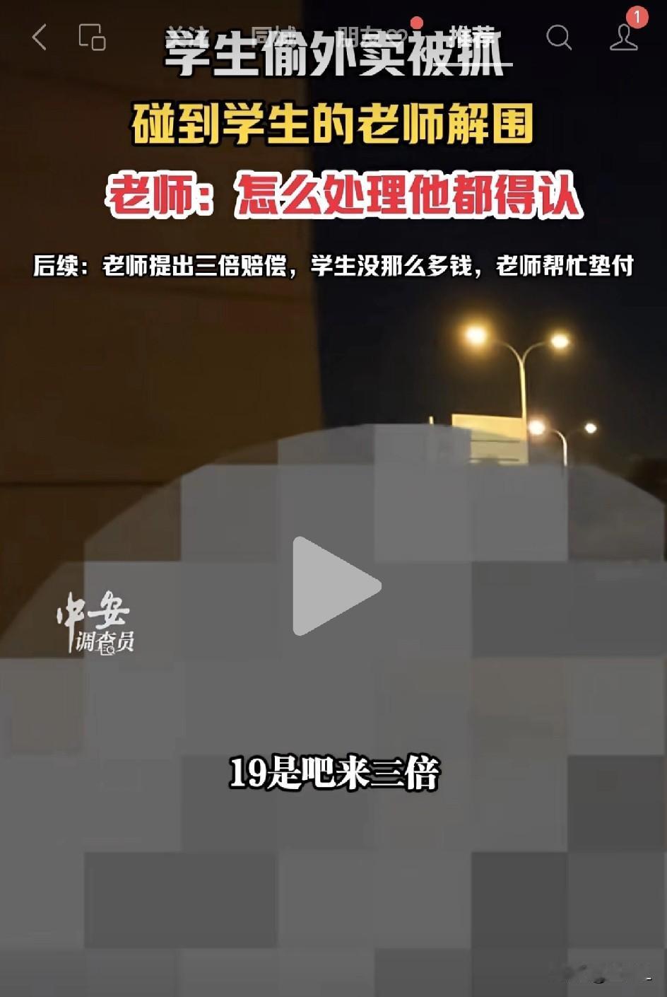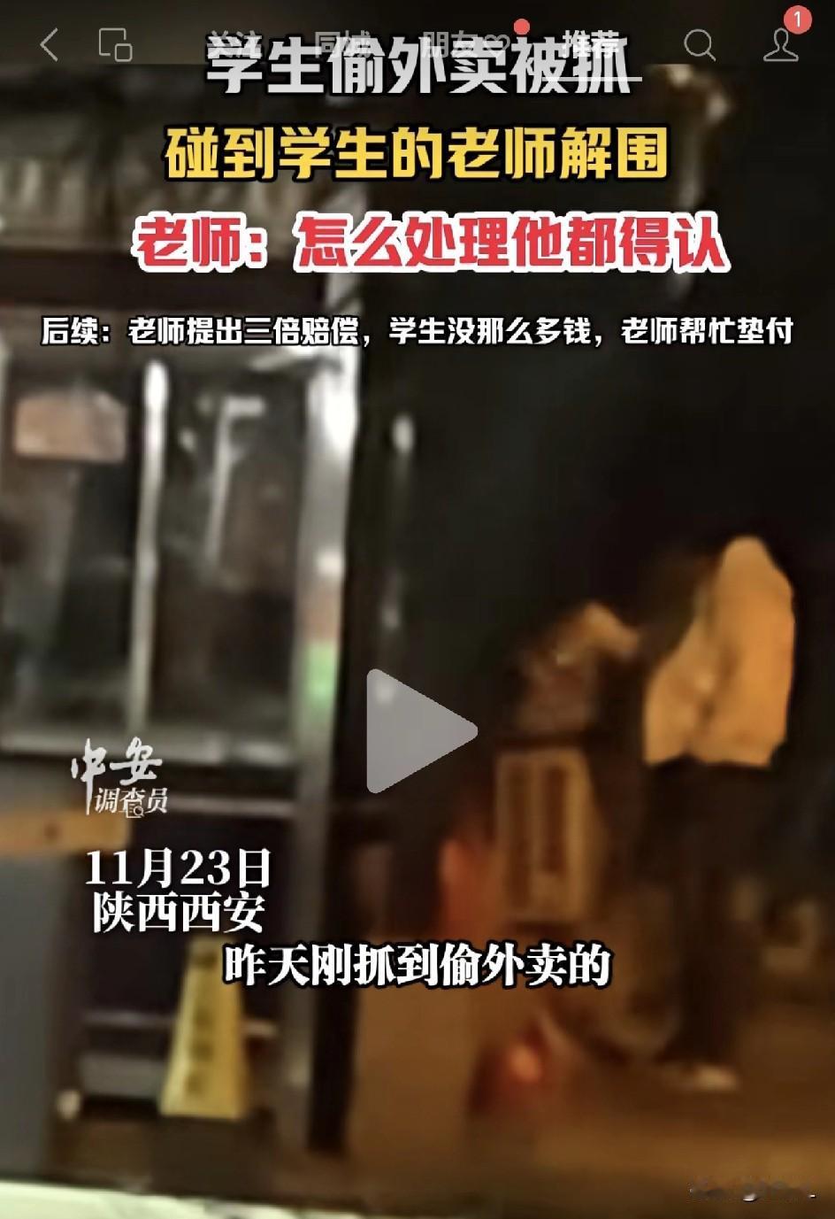 学生偷外卖被抓,老师坚持三倍赔偿后一个举动,全网点赞!惩罚的背后,是最高级的拯救。 一堂发生在校门口的“人生课”! 11月23日,陕西西安,某学校,因为前一天发生偷外卖的情况,外卖小哥在第二天再去送外卖的时候,就没有离开,特意等在附近,看到底谁在偷外卖。 朦胧夜色中,一名男生靠近,伸手就拿走了外卖袋子。 外卖小哥,喊住了男生,要求他出示外卖订单。 男生扒拉半天,也没法展示。正当两人交涉期间,一名老师出现了,问明缘由,确定就是学生偷了外卖了。 外卖小哥说,看他还是个未成年,这次教育了他,以后不要再偷就行了。反正外卖拿回来了,也没有损失。 但老师坚决要求学生出三倍价钱作为赔偿,尽管小哥一直说不用了,老师依然坚持,说怎么处理他都得认,这事一码归一码。 听到学生称自己现在没那么多钱时,老师毫不犹豫的拿出自己的手机,替学生支付了三倍赔偿。 事件引发热议,网友们几乎一边倒地为老师点赞,认为他完美诠释了“教书育人”的真谛: “老师的三观挺正,不会护犊子。问他要三倍赔偿,给他一个教训 让他长记性。” “老师愿意付钱,说明老师想救这个孩子。” “拯救了一个孩子,一辈子的恩师。” “老师这是在教他做人,先做人再做事。” “学高为师、身正为范!” “为人师表这一刻具象化了!” “小树不修不直溜必须得修!” “这才是教书育人、为人师表的老师!” “这是他人生中最重要的的一课,做人!” “好老师,这叫言传身教!” “这样的老师处理方法很好!外卖员做的也很好!” 宽容与惩罚之间,是教育的智慧! 外卖小哥的“得理且饶人”,老师的“刚性原则与柔性担当”,共同守护了一个年轻学生摇摇欲坠的尊严底线,并且让他明白,做错事必须承担后果,这是责任的底线。 最好的教育,不止在课堂。这位于夜色中挺身而出的老师,用一次“不近人情”的惩罚和一次“雪中送炭”的垫付,完成了一次完美的“立德树人”。 他惩罚了一个错误,但很可能因此拯救了一个未来。 真正的善良,有时恰恰藏在看似严厉的规则之下;而最有力量的拯救,是让犯错者有机会挺起胸膛,重新做人。 信息来源于中安新闻,侵联删!