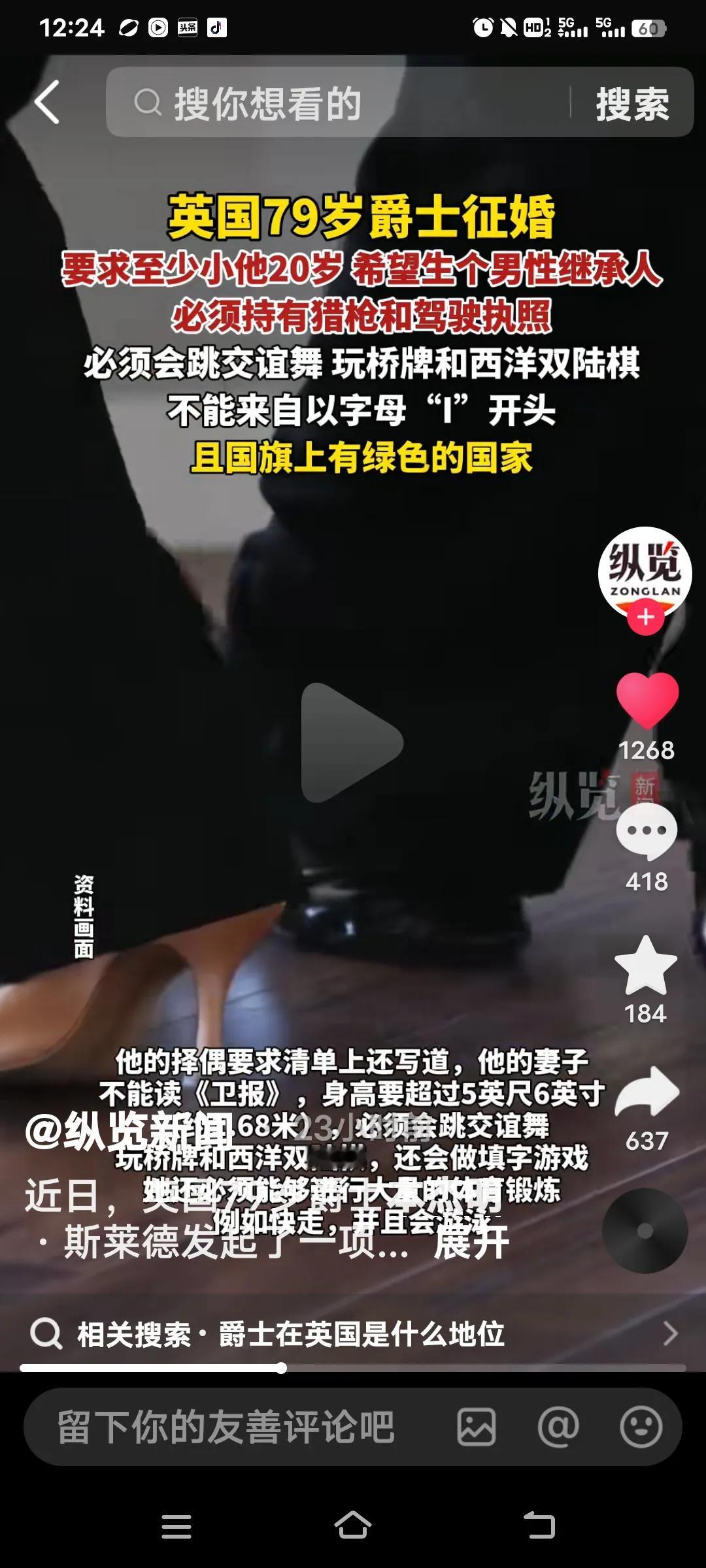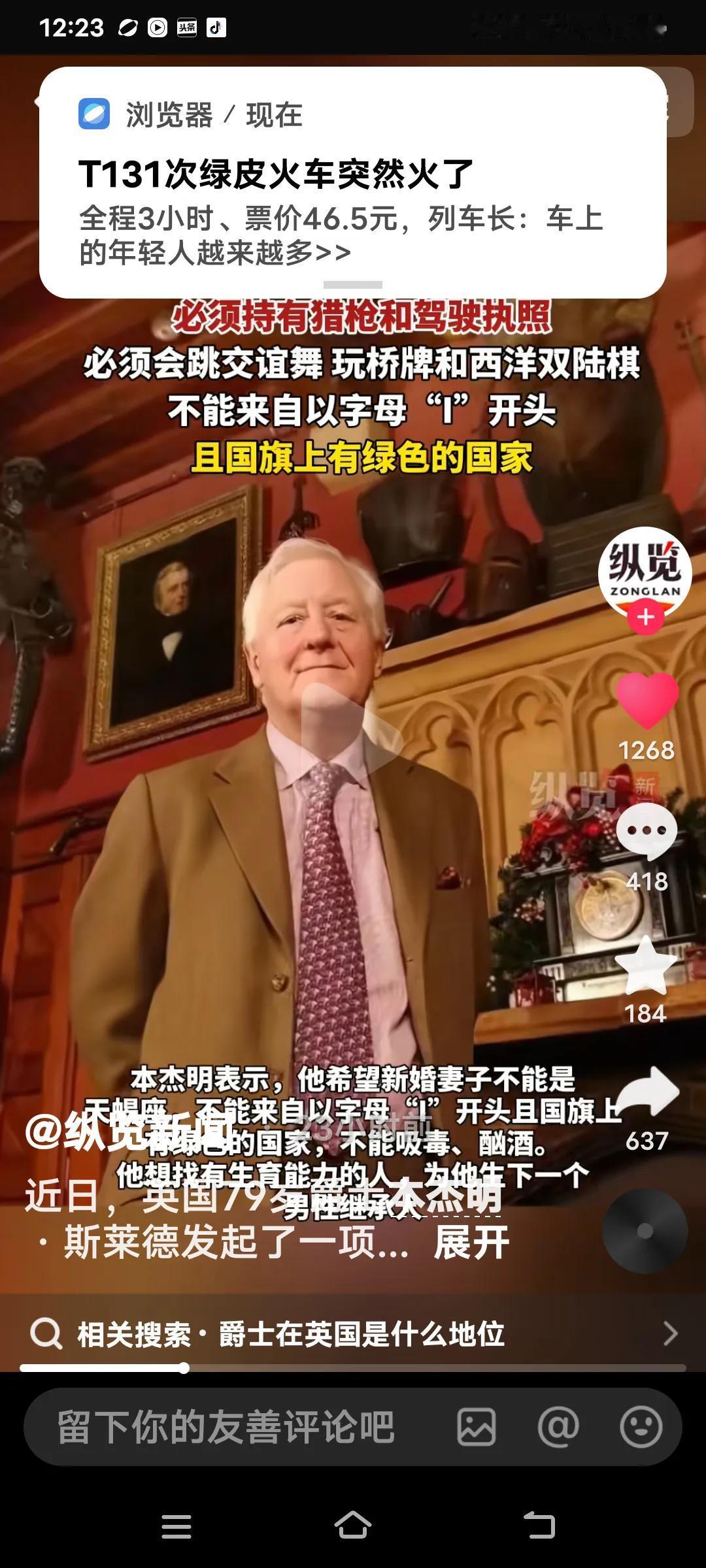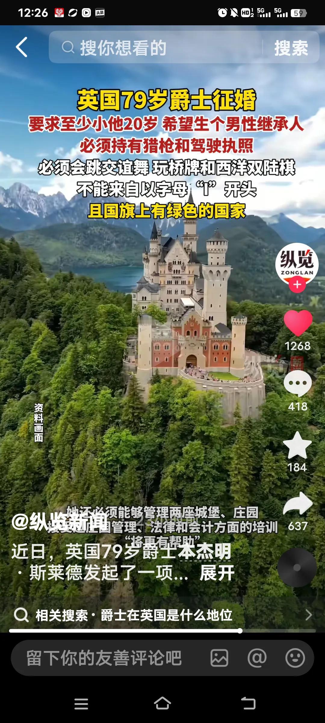英国这79岁爵士本杰明·斯莱德征婚,要求可真够奇葩的。得比他小20岁,不能是天蝎座,不能来自特定国家,还不能吸毒酗酒。要会用枪、会跳交谊舞、玩桥牌和西洋双陆棋,会做填字游戏,能大量体育锻炼、会游泳,得有猎枪和驾驶执照,有直升机驾驶执照更佳,还得能管理两座城堡和庄园。 他这么多要求,原来是想找个能为他生男性继承人的。他之前感情不顺,几段感情都没孩子。虽说他给妻子每年5万英镑,但这条件,感觉是在“万里挑一”啊,不知道能不能找到符合标准的人。 感觉实在是过分高傲了,看不到自己的弱点终究难免成功,小20岁的也59岁了哪还有这么多优点,再生育,这可能吗?