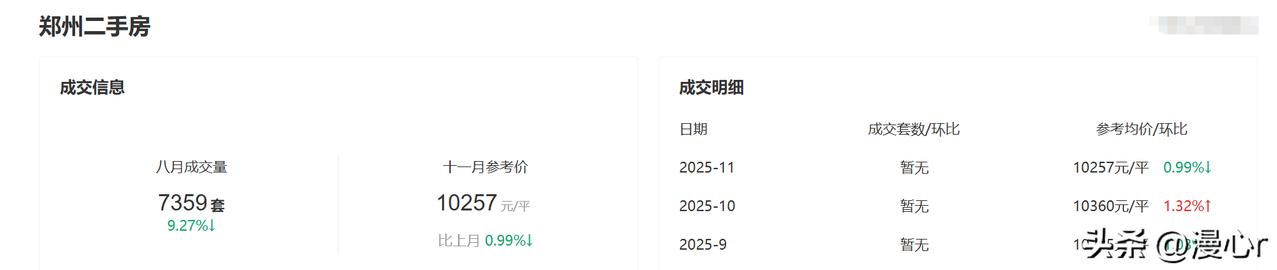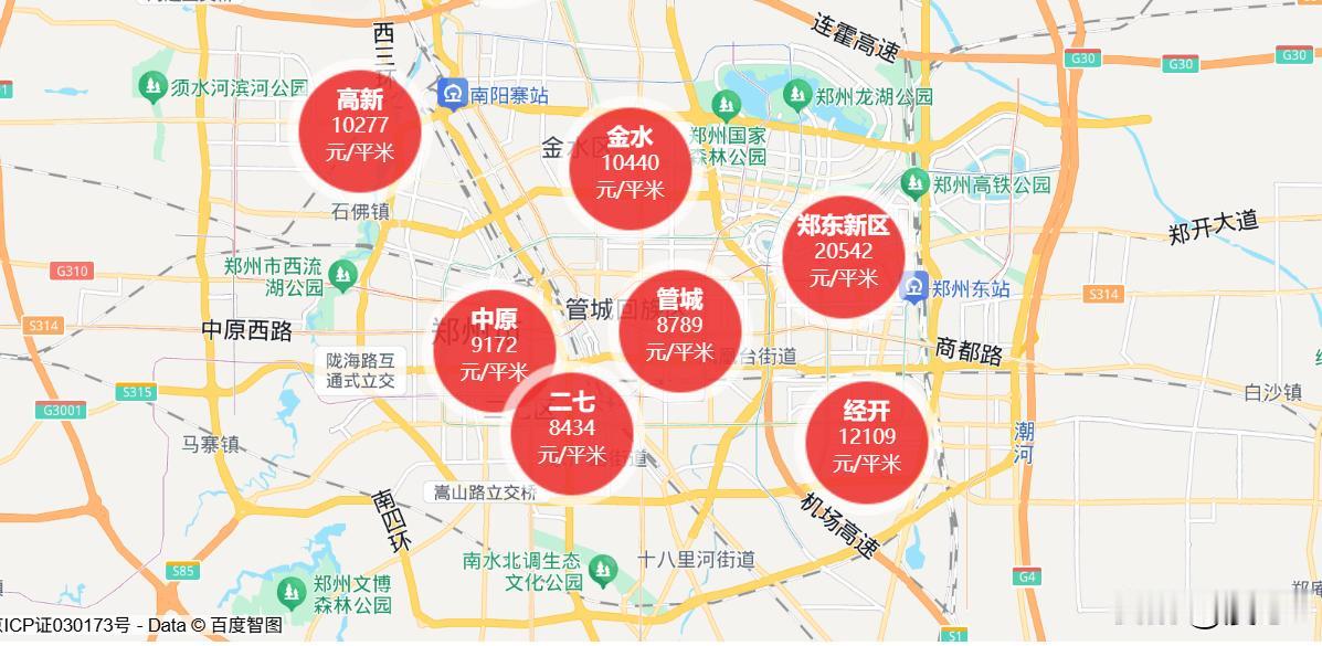 2025年11月,郑州郑东新区二手房均价20542元; 2025年11月,郑州金水区二手房均价10440元; 2025年11月,郑州高新区二手房均价10277元; 2025年11月,郑州管城区二手房均价8789元; 2025年11月,郑州中原区二手房均价9172元; 2025年11月,郑州二七区二手房均价8434元; 2025年11月,郑州经开区二手房均价12109元。 数据说明:以上均价数据,均来自房天下数据,只是作为数据分析的参考,旨在反映郑州各区11月份的房价走势,不能准确映射当地实际房产价格。因为新房、二手房、不同区域不同位置的房价差别较大,占比也不同,仅通过一个均价不能一概而论。下面漫心r就把整理出来的数据进行一个初步的分析,和大家分享一下感受: 2025年11月,郑州二手房市场呈现出明显的区域分化格局。郑东新区均价遥遥领先,成为郑州房价的制高点;金水区、经开区、高新区组成了万元级的第二梯队,管城区、中原区和二七区的房价集中在8000-9000元。 从市场热度看,金水区和郑东新区是购房者关注的焦点区域,这两个区域无论是房源数量、看房量还是房价都处于全市前列。郑东新区作为郑州房价的标杆,像融创中原壹号院、永威上和院等楼盘直接将郑州房价天花板推高到6万多。 金水区作为老牌中心城区,教育资源和成熟的配套成为许多购房者的首选,龙湖景粼玖序、金科城和万科城关注度较高。 管城区人气最高的小区是绿都澜湾,中原区的热搜小区榜中,阳光花苑位居第一,二七区的华润悦府、经开区东方今典都是关注度较高的小区。 随着12月份的到来,郑州二手房市场的房价估计会持续分化,地理位置优、教育资源密集、生活便利的房子抗跌能力强,反之则较弱。