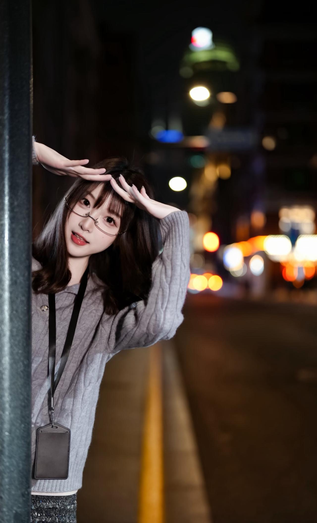 女生坐在台阶上,戴着眼镜,穿着黑色鞋子。眼镜系美女 知性眼镜少女 戴眼镜女孩