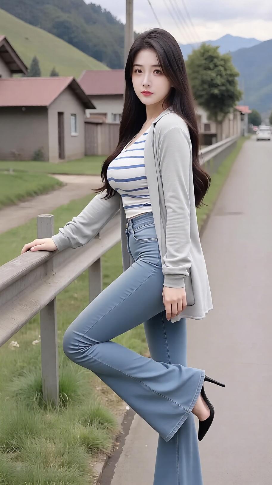 甜美少女在乡间小路上,清新自然,美不胜收!🌿💕