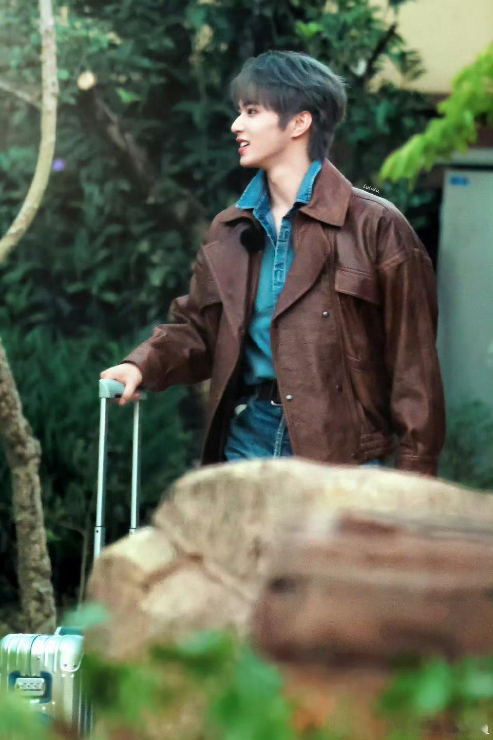 刘耀文棕色皮衣路透🈶刘耀文今日综艺拍摄路透!!!好帅的哥哥