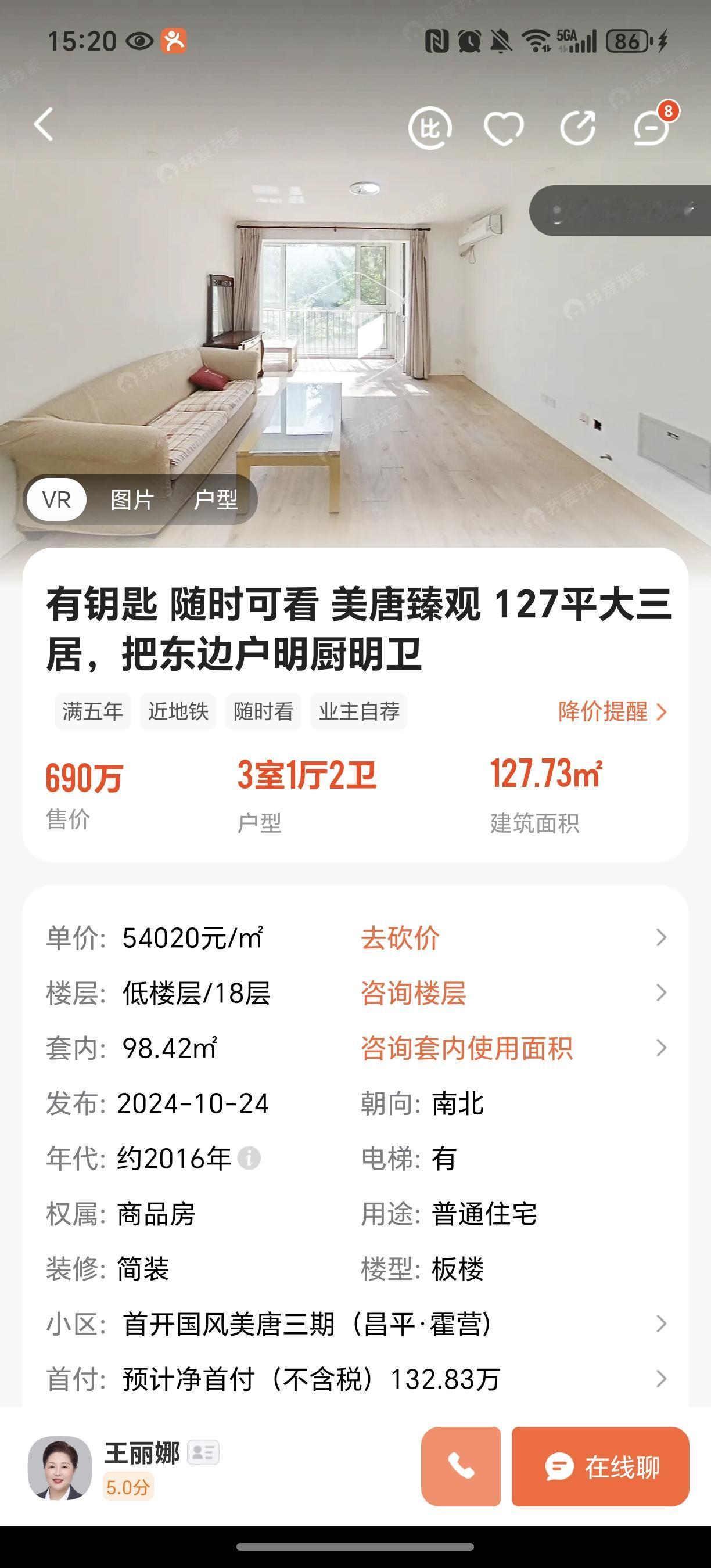 同一户型:970万,708万,690万。 不敢想象,要是以这些价格卖出去,这个钱实实在在的出现在银行卡余额,到底是怎样的心情! 但问题就是看得多,买的少,这几套位于北京回龙观附近的国风美唐,属于改善型房源,年代新,物业好,属于很多刚需都会考虑的房源,但缺点就是附近有个加油站,安全系数有点低。 周围的商业配套设施不齐全,对口的学校质量不算好。 但作为回龙观改善型住房,国风美唐分为1期,2期和3期,其中2期有三栋回迁房,所以二期的价格相对较低,但优点非常明显,房型好,小三居,大两居还有大三居,有阳台,户型也挺好的,重点就是小区环境也蛮好的。 不过今年挂牌量飙升,价格参差不齐,可以理解为高价出的是前两年自己卖到了高点,希望自己少损失点,早点找到合适的接盘侠,尽快出手。 一套房的价值在于你认为多少钱,它就值多钱,你觉得它值300万,它就值300万,到你认为的理想价位,你赶紧买入就好了,不要做些不切实际的梦!买房最忌讳的就是高估自己的潜力和家庭的承担力! 房价 ​北京买房