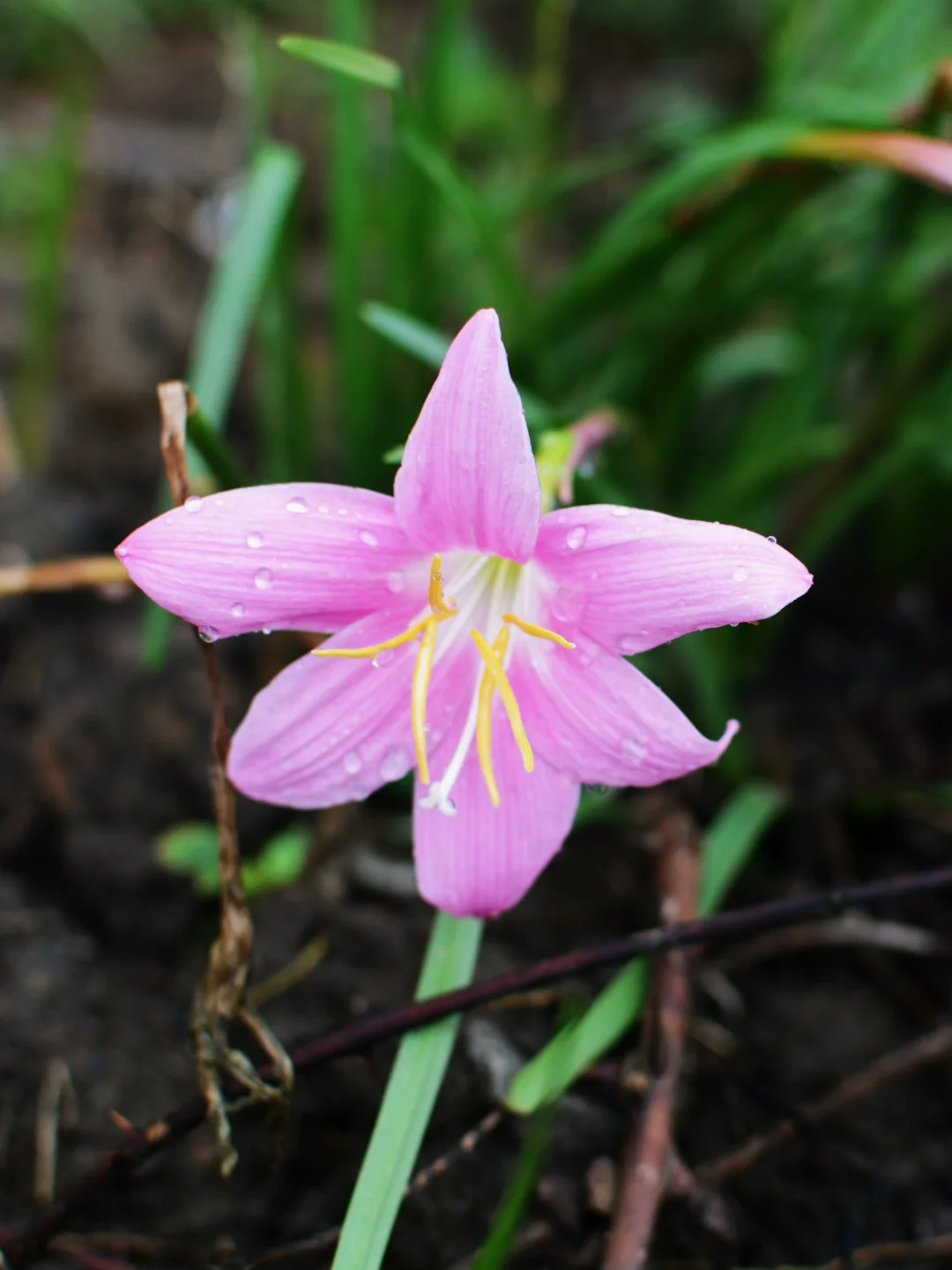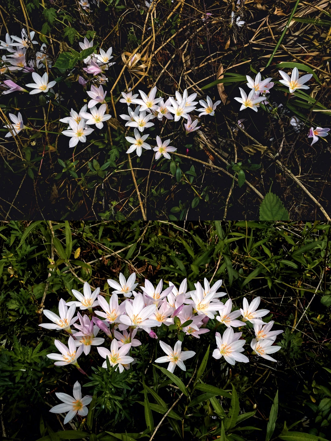 最为常见的风雨兰恐怕就是葱莲,这种外形似葱、开白色小花的小球根植物,常被作为地被植物,或用于点缀花境边缘。葱莲(图2-4)还有一个好姐妹“韭莲”(图5-6),开粉色花朵,花也更大一朵。