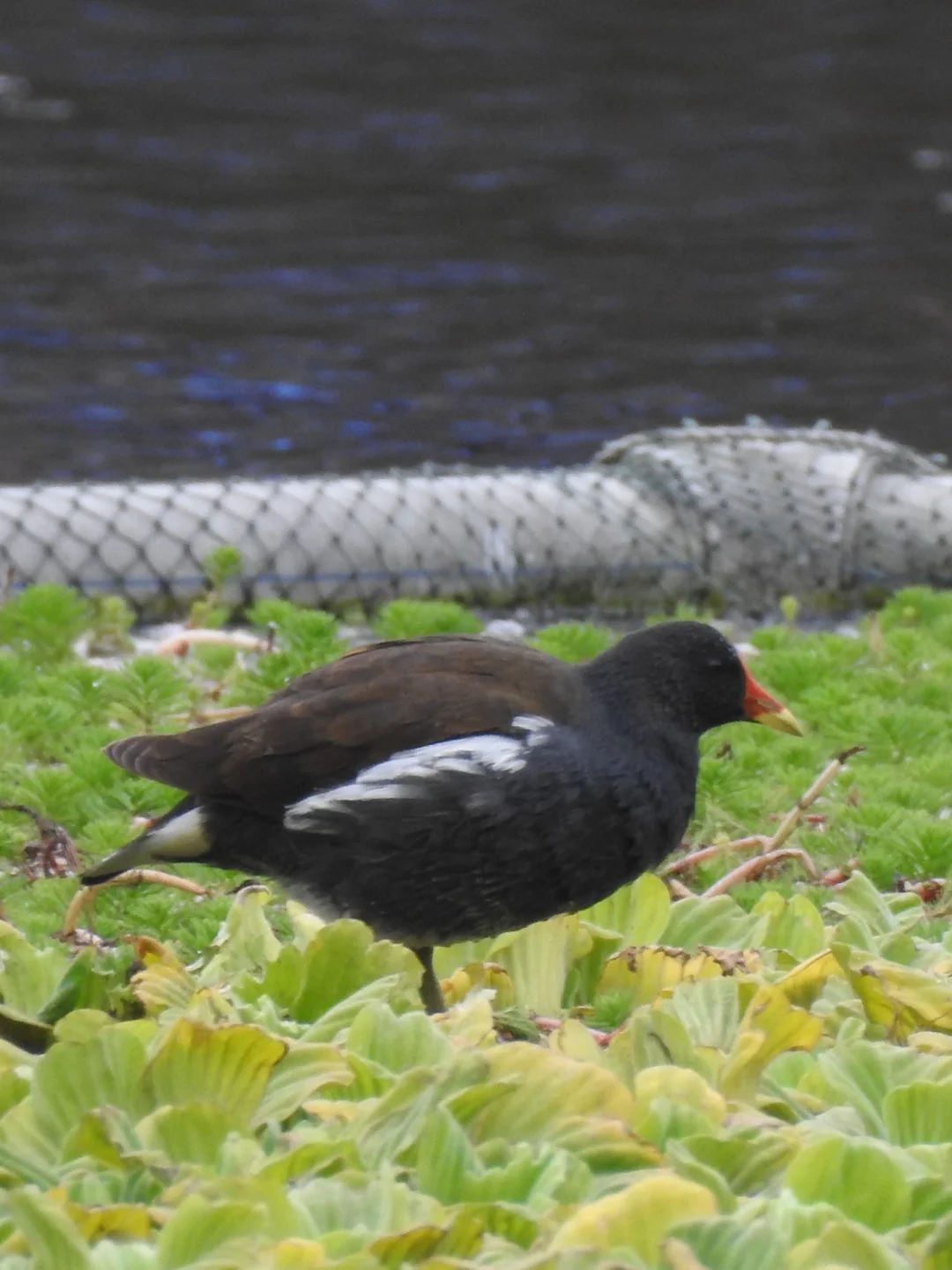 体长约31厘米。全身青黑色,只有两胁和尾巴下面有白色斑块。嘴和额甲色彩鲜艳。脚上部有一鲜红色环带。雌雄相似。