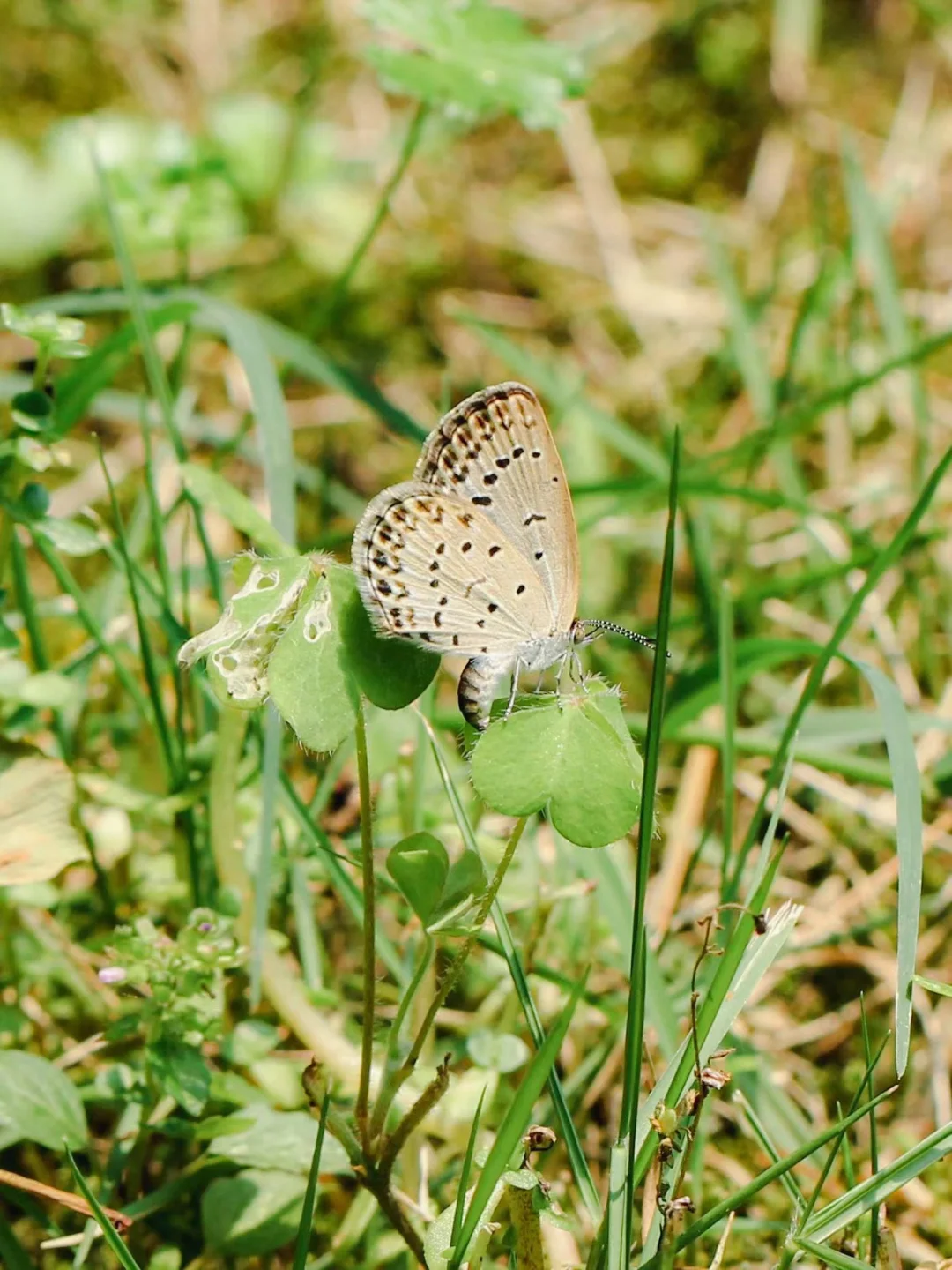 红花酢浆草(图1-3)是外来物种,开红色花朵,不能结籽,靠无性繁殖。酢浆草本草(图4-5)开黄色小花,结宝塔形的果实。它们的果实在成熟后,稍有风吹草动就会“爆炸”,将种子弹射出去。它的弹射距离可达1-5米,所以我们可以在一些陡峭的土坡、石壁上看到它的身影。酢浆灰蝶(图6)正在酢浆草叶子上产卵。
