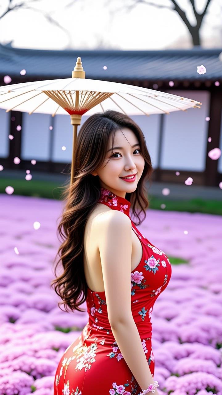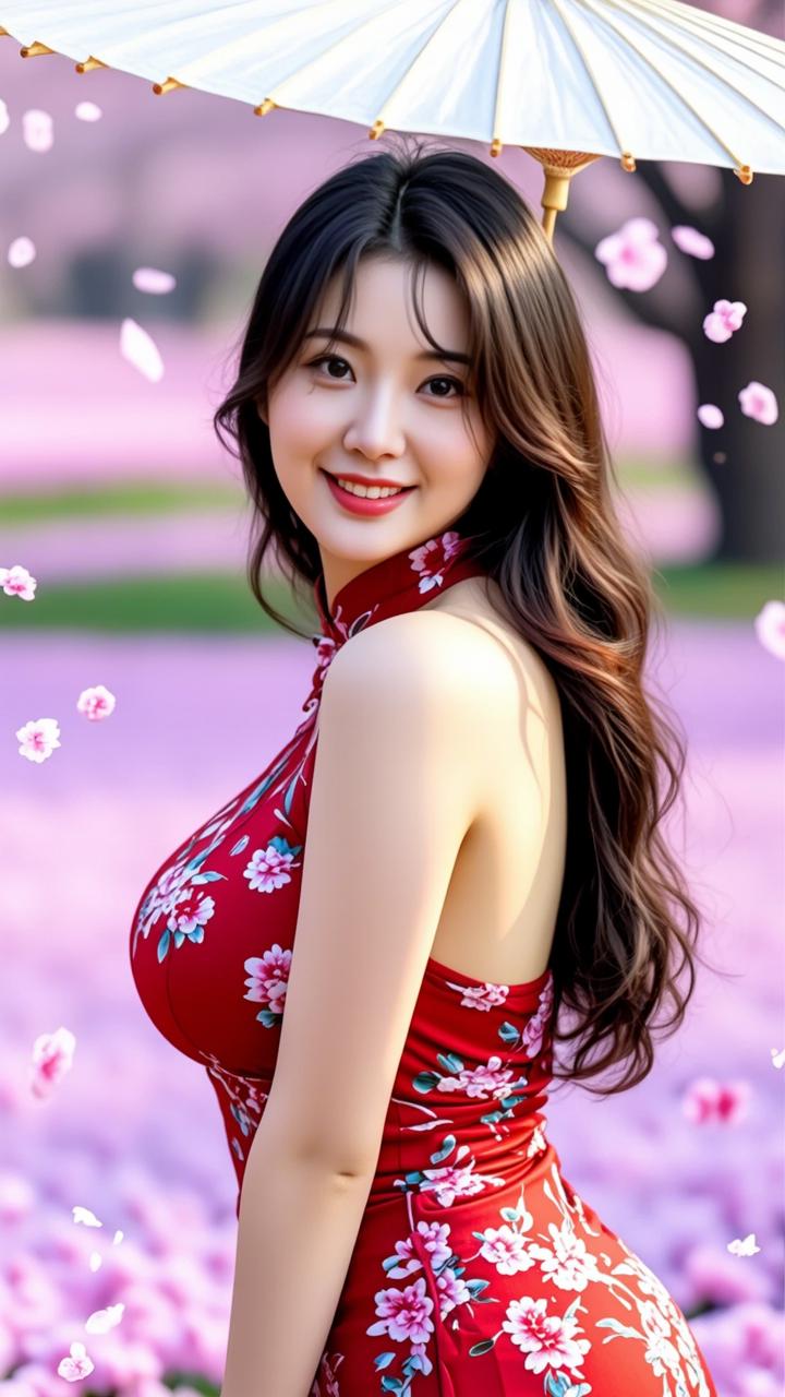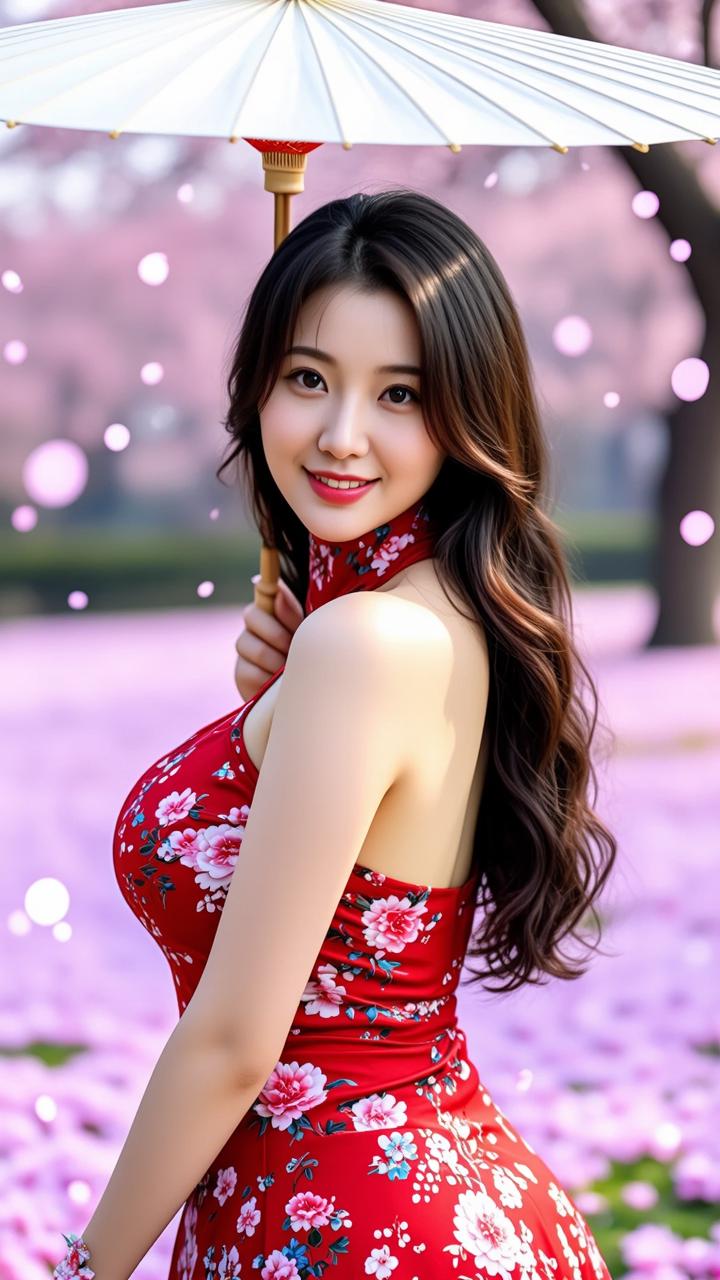 想象一下,在落英缤纷的樱花树下,一位身着红裙的美人撑着伞,笑容灿烂如同春日暖阳。那红裙与粉色樱花相互映衬,就像一团炽热火焰在花海中燃烧,每一片飘落的花瓣都仿佛在为她伴舞。 这场景,就如同插画里的唯美画面,让人忍不住沉醉。就像二次元美女薇薇安撑伞漫步樱花林,美到直击心巴。那笑靥如花的模样,能瞬间治愈所有疲惫,让人觉得世界都变得温柔起来,仿佛时间都为这美好瞬间静止了。