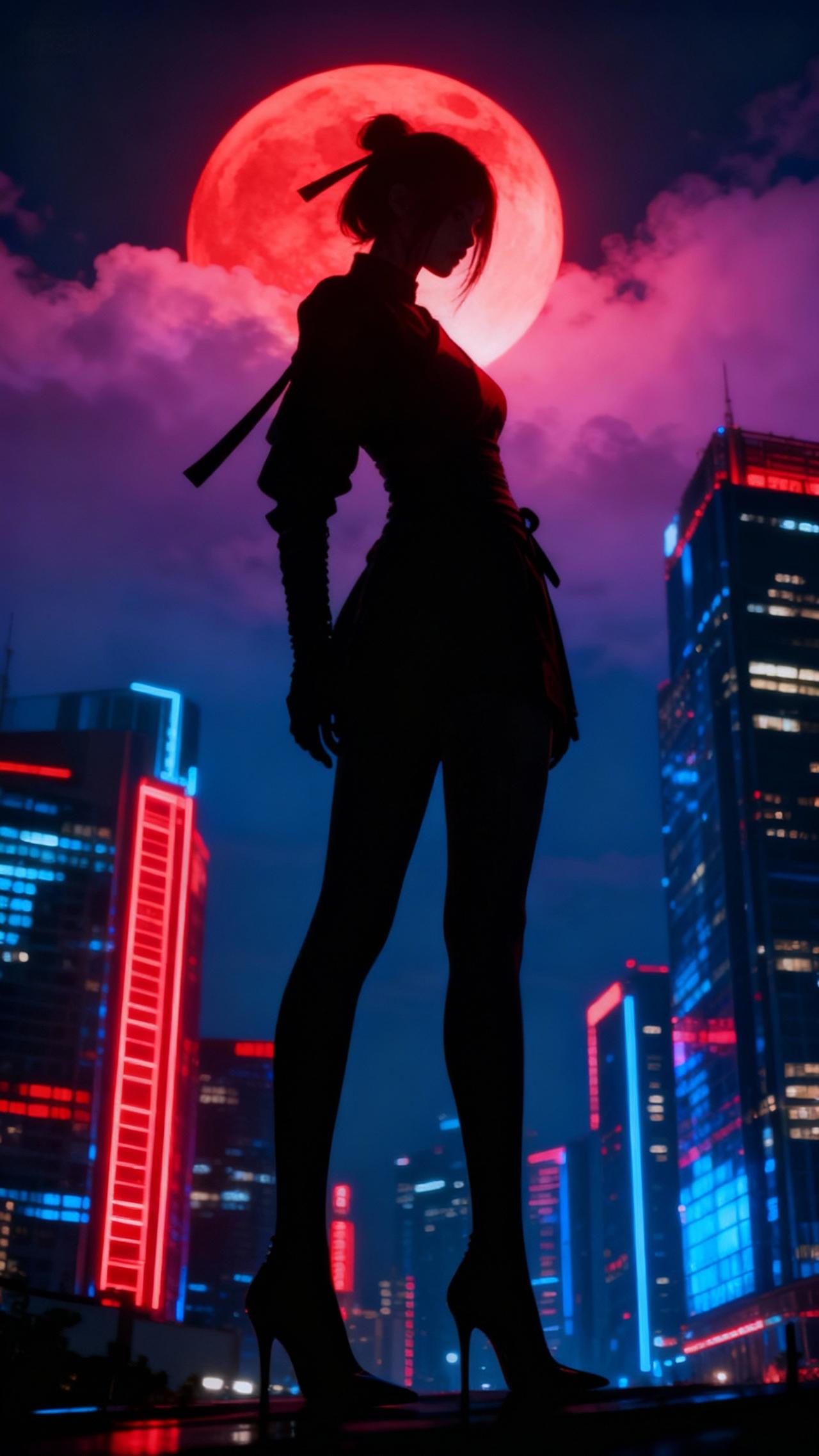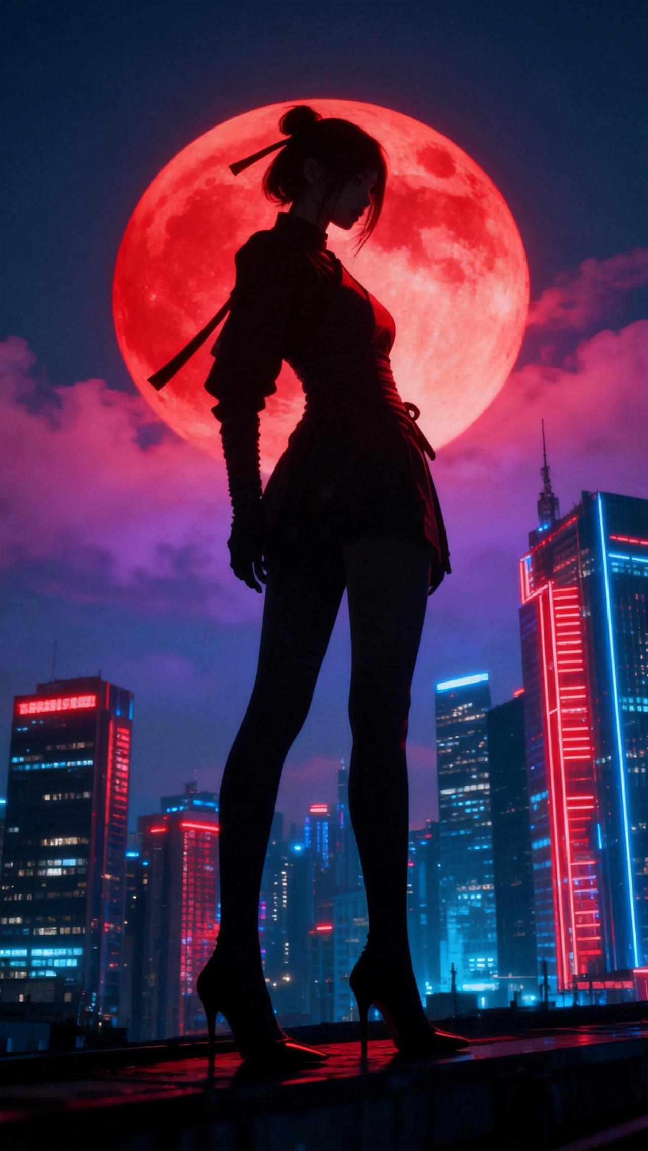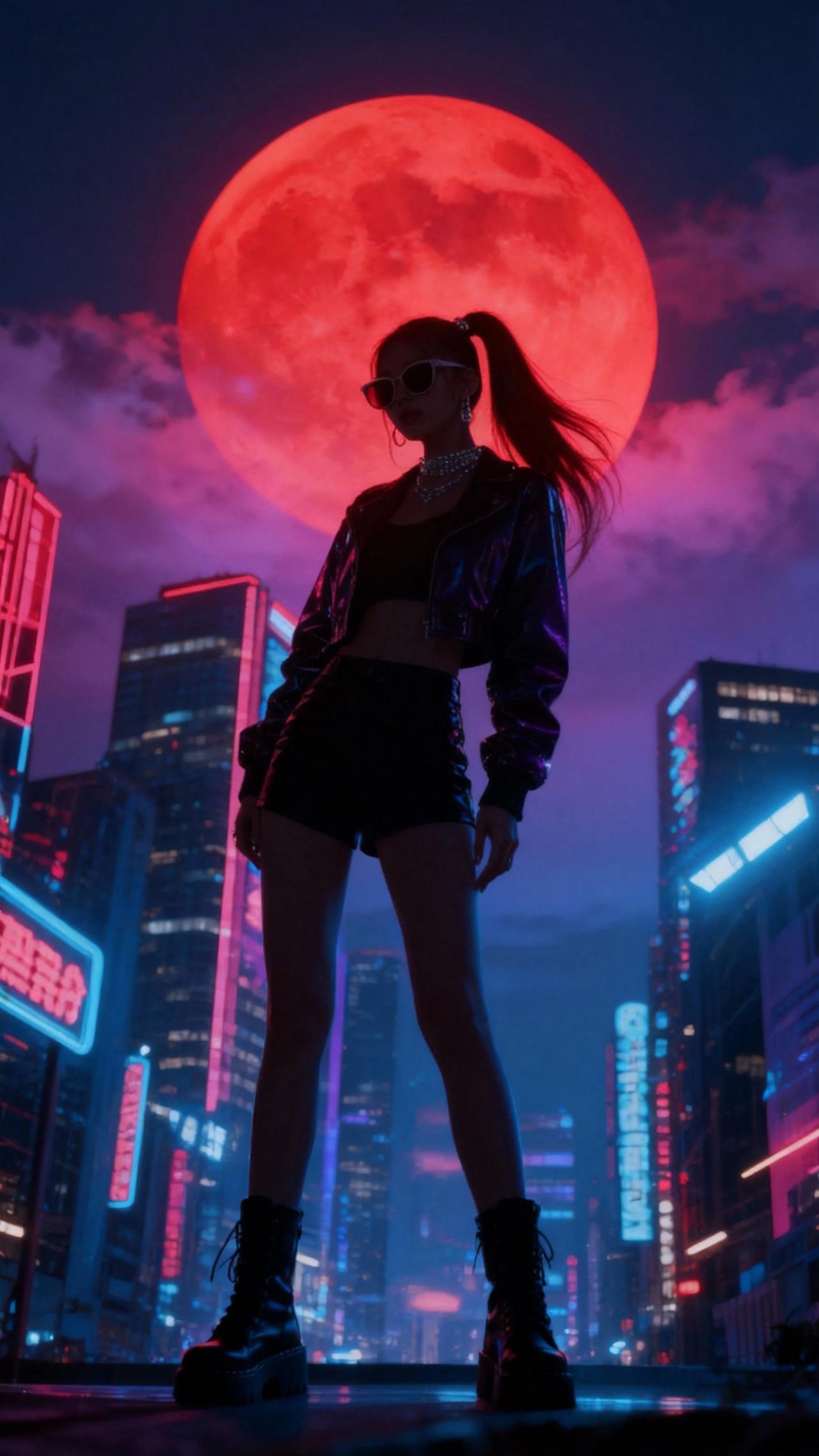 都市酷女孩,红月之夜,时尚穿搭,都市夜景
