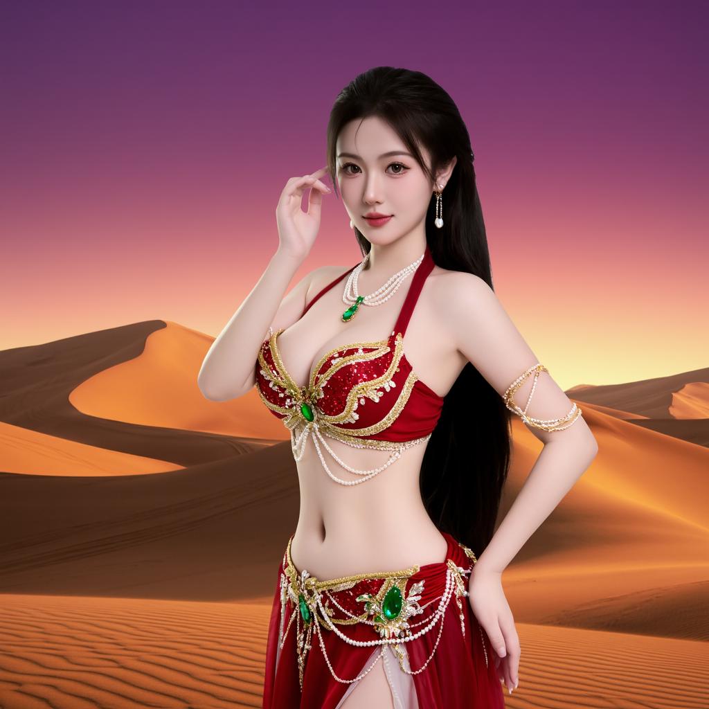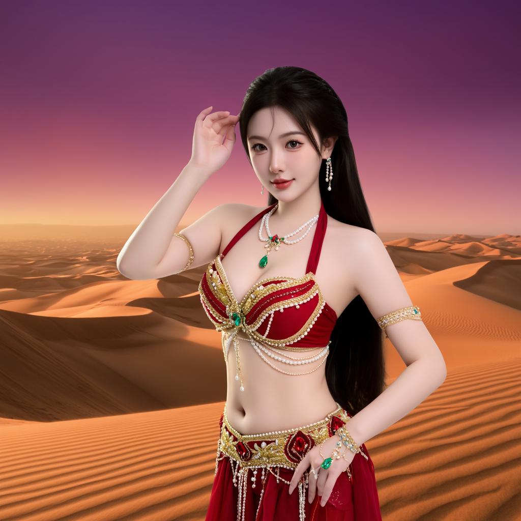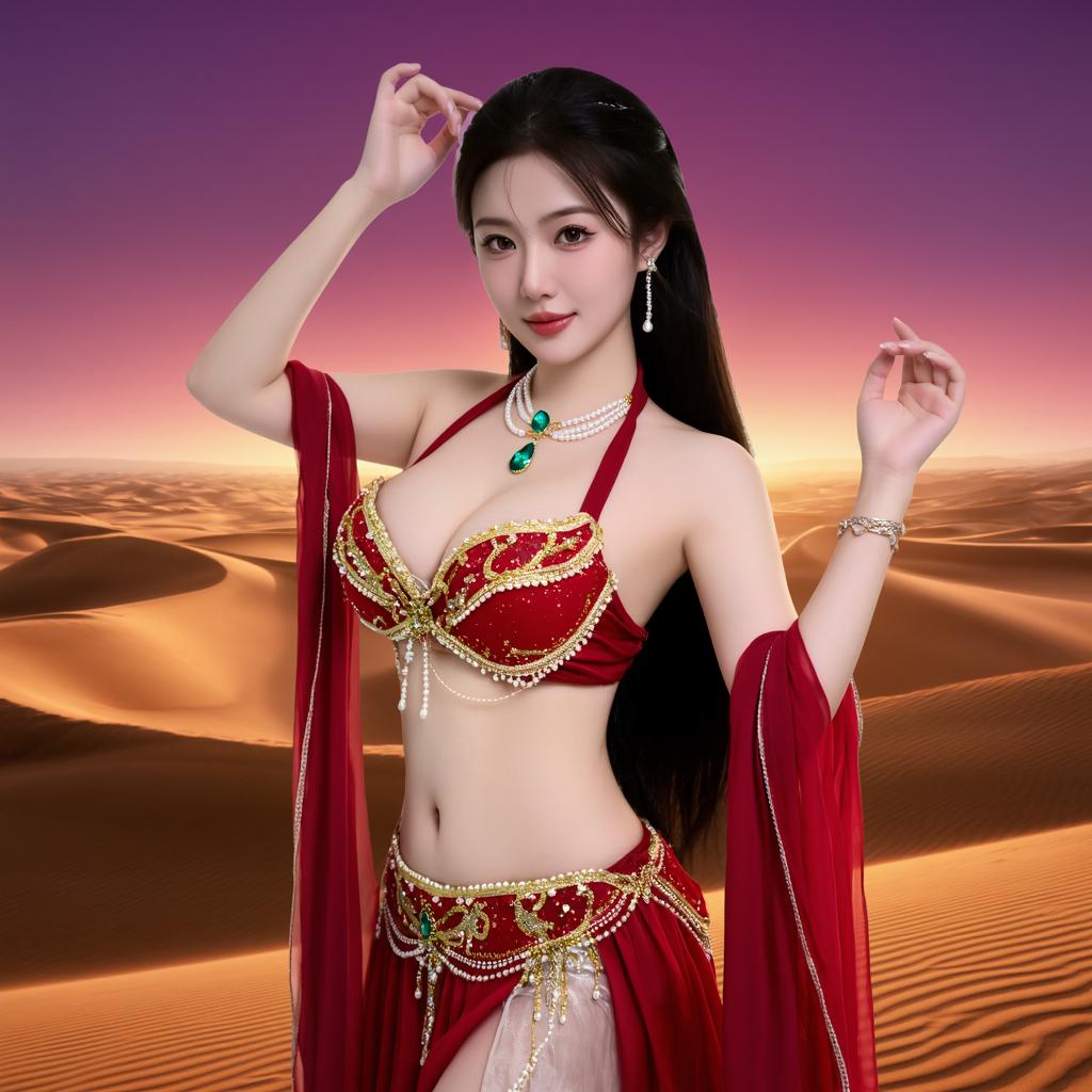 沙漠中的异域风情,红衣美人惊艳亮相!🏜️💃🔥