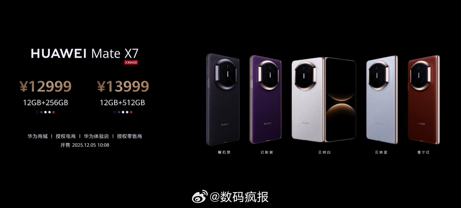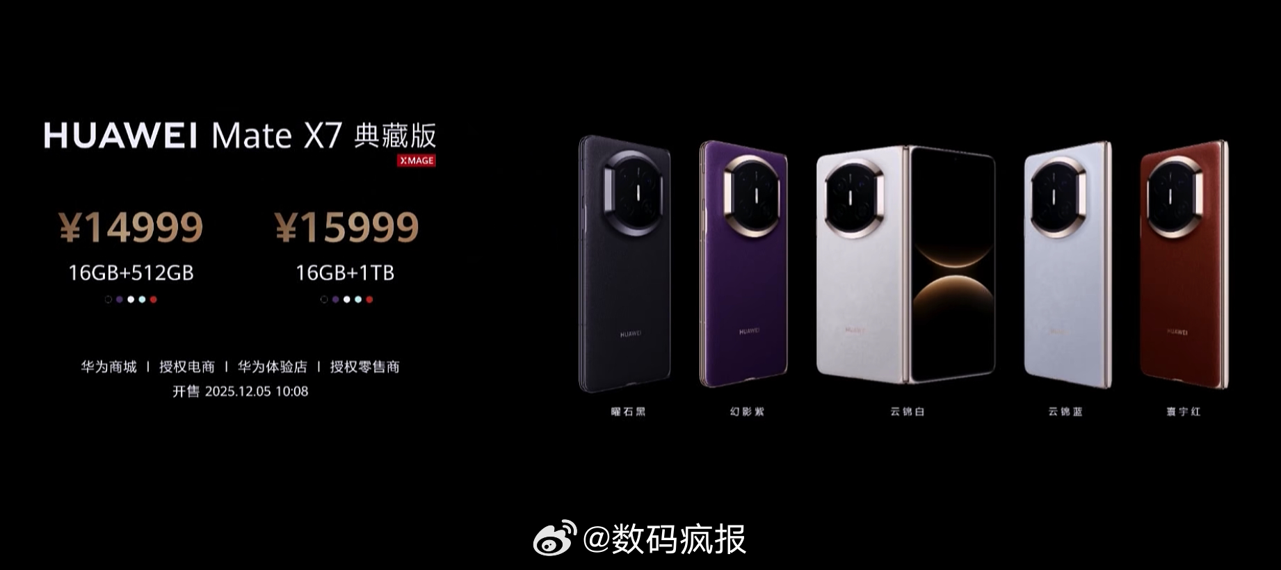 华为Mate X716+512 12999元16+1T 13999元 华为Mate X7典藏版16+512 14999元16+1T 15999元 20+1T 17599元
