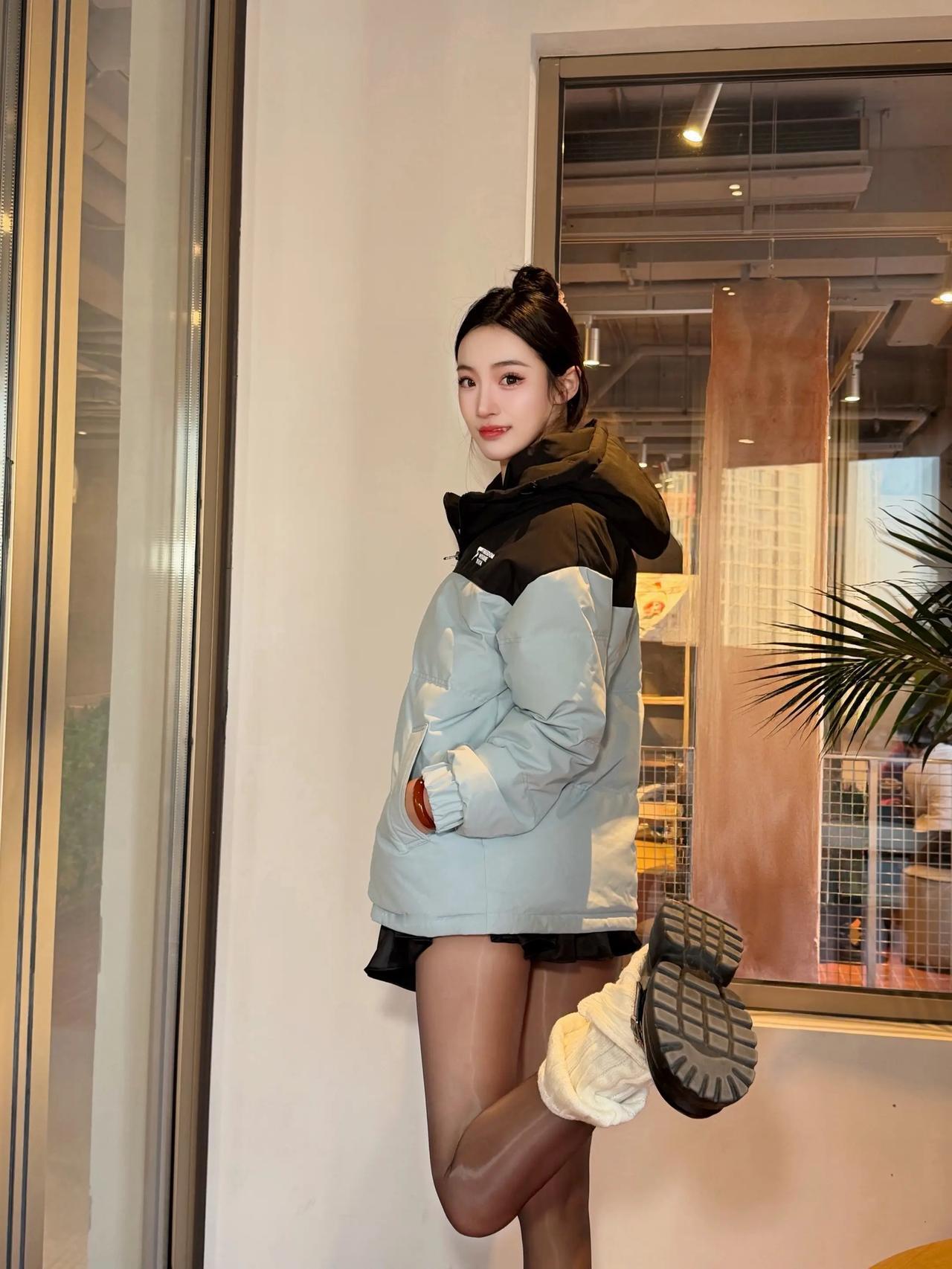 【冬日甜酷ootd|寒潮天这样穿又暖又出片!】 雾霾蓝拼接羽绒服+黑色百褶裙,甜妹也能秒变盐系少女~ 短款版型拉高腰线,搭配过膝长筒靴显瘦1米8! 连帽设计防风又减龄,内搭薄绒冬天穿刚刚好~ 今天也是把“保暖时髦”焊在身上的一天。@小美彤晒图笔记大赛 今日穿搭