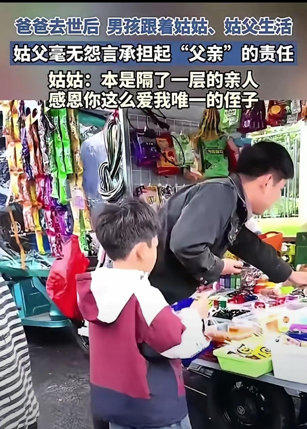 真的被蚌埠这位姑父戳中泪点!血缘哪是亲情的必需品,真心才是! 5岁小轩没了爸爸,妈妈打工养家,姑姑心疼接他回家,本以为姑父会抵触,没想到他比亲爸还上心。收拾房间买新床,接送幼儿园忙前忙后,周末带吃带玩从不吝啬,一句“孩子命苦,我们不疼谁疼”,比任何甜言蜜语都戳心。 现在太多人把亲戚关系算得明明白白,可真正的温暖从来不是血缘绑定,而是心甘情愿的担当。姑父的付出,不仅给了小轩完整的童年,更证明了爱能跨越血缘隔阂。 那些说“只是姑父而已”的人不懂,亲情的深浅,从来不是DNA说了算,而是藏在日复一日的陪伴里。你身边有这种跨越血缘的暖心亲戚吗?