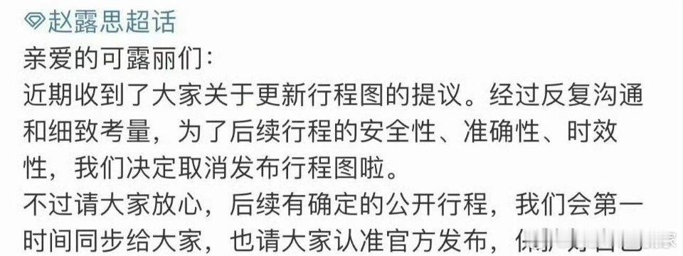 赵露思工作室取消每月的行程图啦!期待露思接下来的活动呀!多多进组