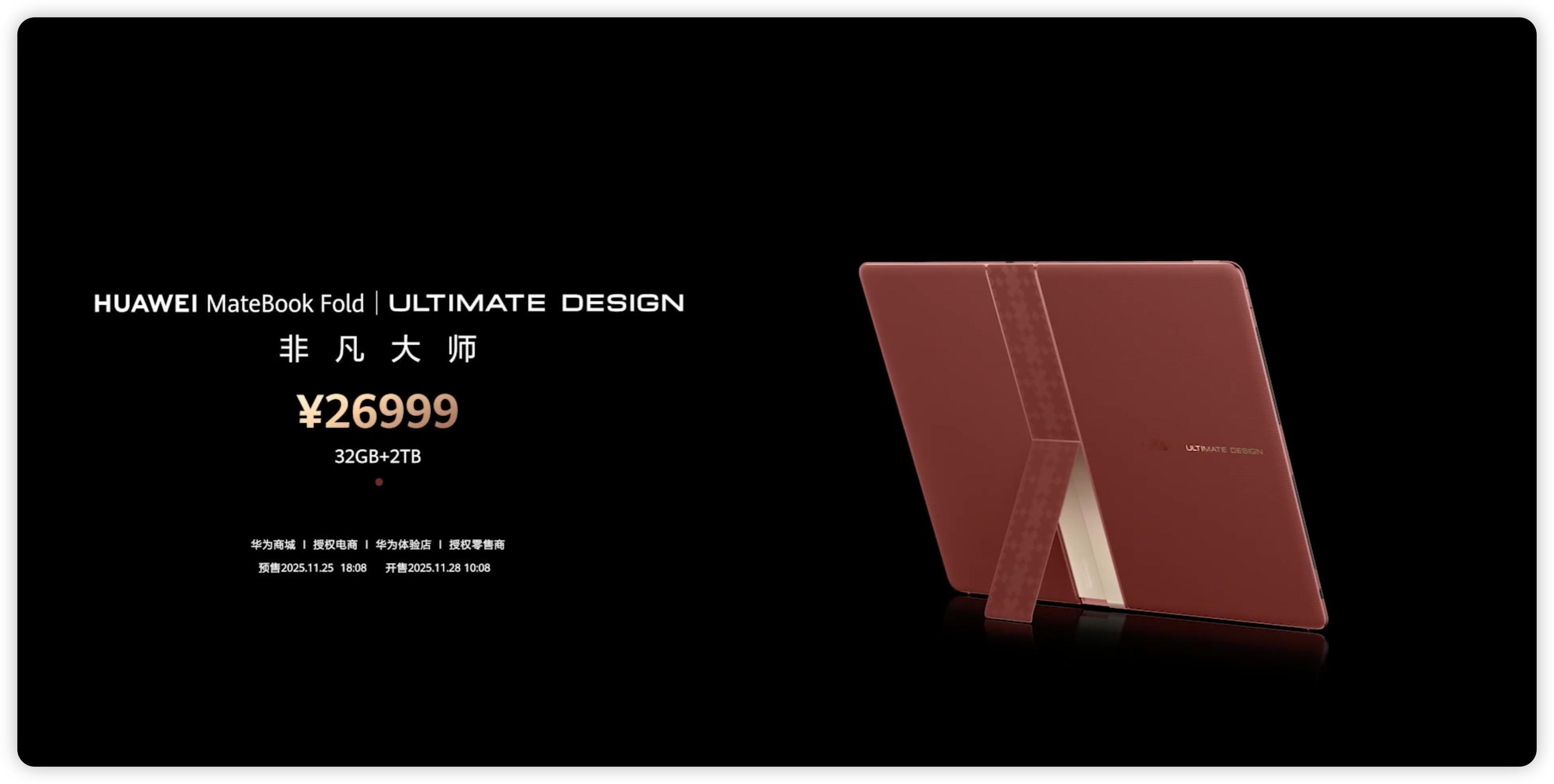 华为 WATCH ULTIMATE DESIGN 非凡大师紫金款,¥24999华为 MateBook Fold 非凡大师,新配色「瑞红」,¥26999