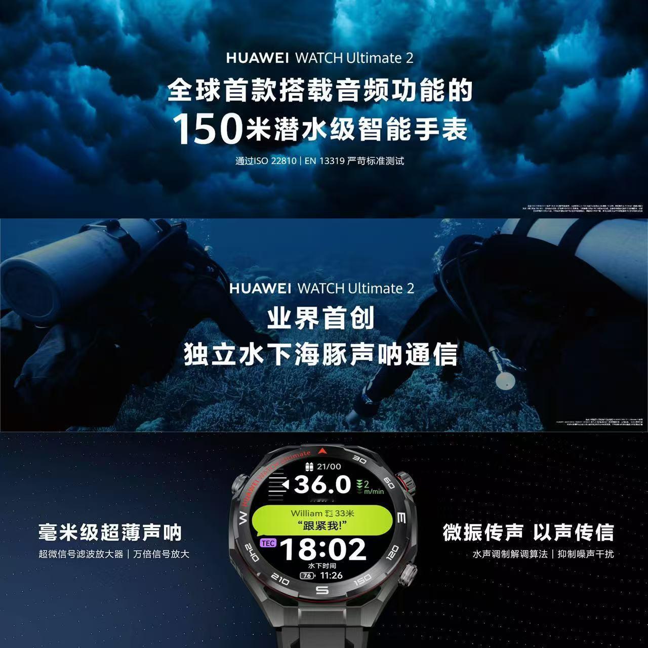 华为旗舰手表又更新了 华为 WATCH Ultimate 2 这次依然是众多硬核功能更新,聚焦“专业突破+进阶智能”,我来跟你解读一下 1)性能和智能大幅度升级,鸿蒙6.0+麒麟W80芯片(性能升30%),首发腕上鸿蒙智能体,以后小艺也可以很方便的在手表上使用了。2)健康监测:X-TAP智感窗+表底模组组成分布式玄玑系统,3秒微体检(17项指标),新增高血压等风险评估,还支持互动小游戏。3)全域通信:通讯方面不仅拉满,还有独占功能。新增水下海豚声呐通信(30米传消息,60米SOS)、北斗卫星语音消息(10秒语音),还有 eSIM独立通信功能。4)场景交互:支持星闪车钥匙、双手势操控(开车门等),尊界 S800和问界 M9都可以使用,很方便,很科幻。并且这次还联动大疆/影石相机,也实现了手势控制。5)潜水防护:150米深潜模式(上一代≤100米),首支持150米防水级音频,双潜水认证更专业。这个很强150米水压这么大,防水难度很高,华为确实有点东西。除了以上这些新功能以外,华为WATCHUltimate2 还有非常多专业且好用的功能,可以说是目前智能手表中非常强的一款产品,而且外形也很高端,推荐大家关注了解。