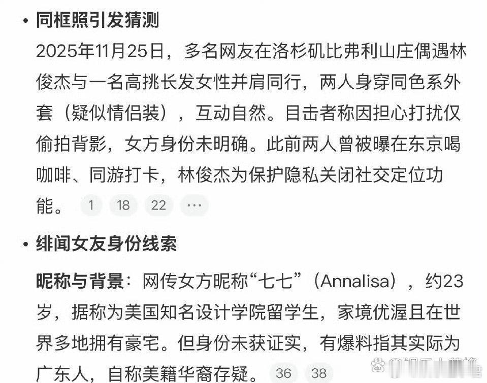 11月25日,有网友在社交平台发文,称在洛杉矶偶遇林俊杰与一位身材高挑的女孩逛街,两人穿同色系的上衣搭配白色裤子,看起来很像情侣装,疑似恋情曝光!