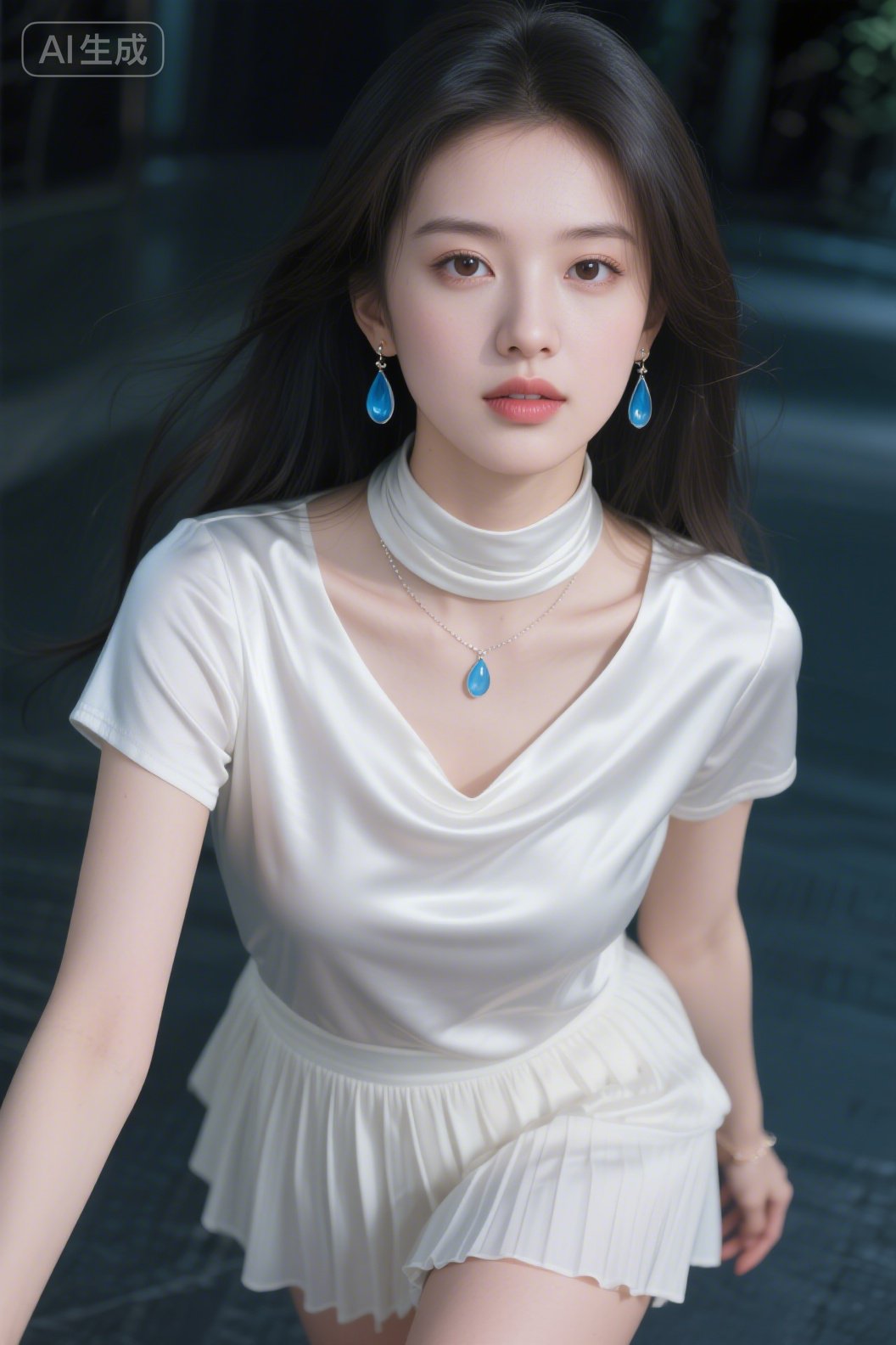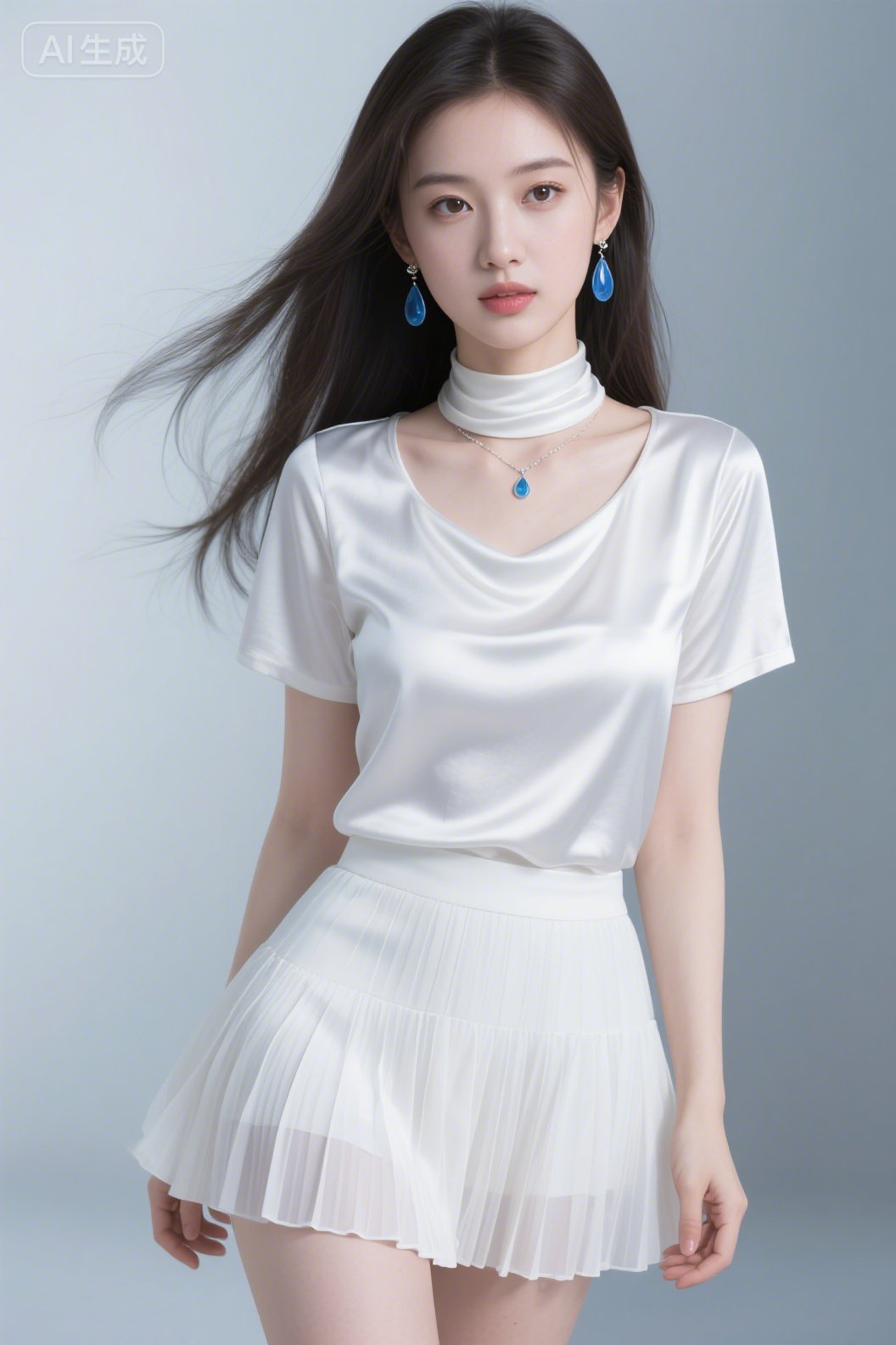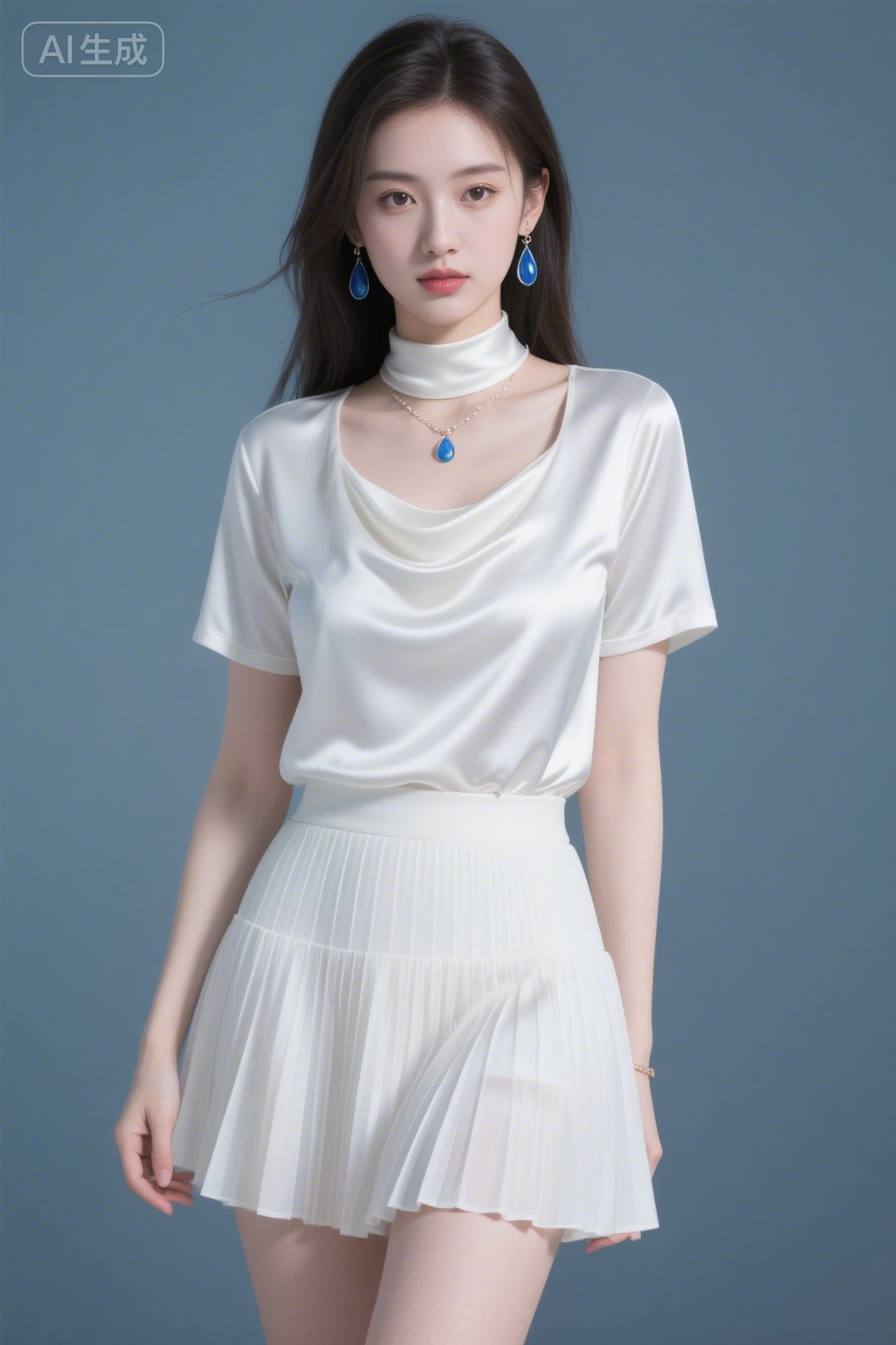 这位美女穿着蓝色礼服,看起来好漂亮。