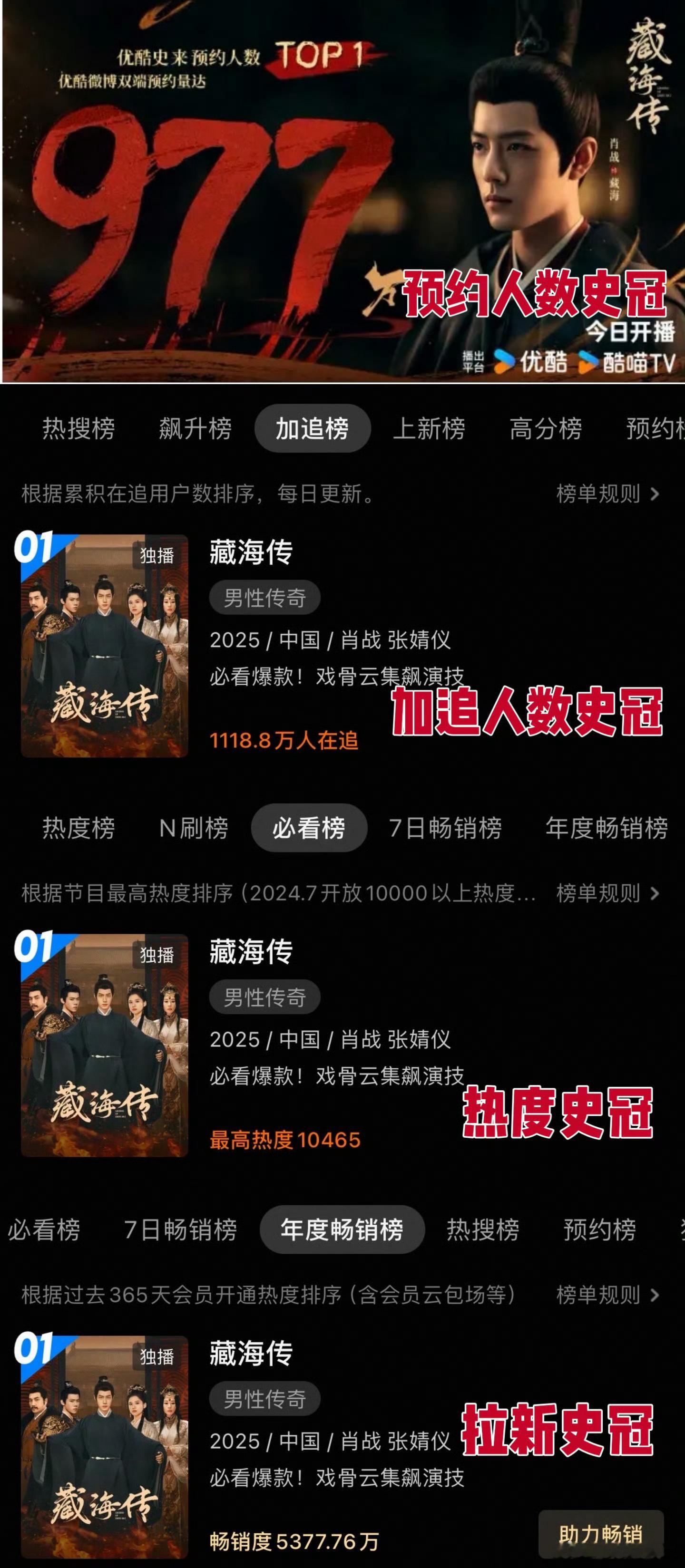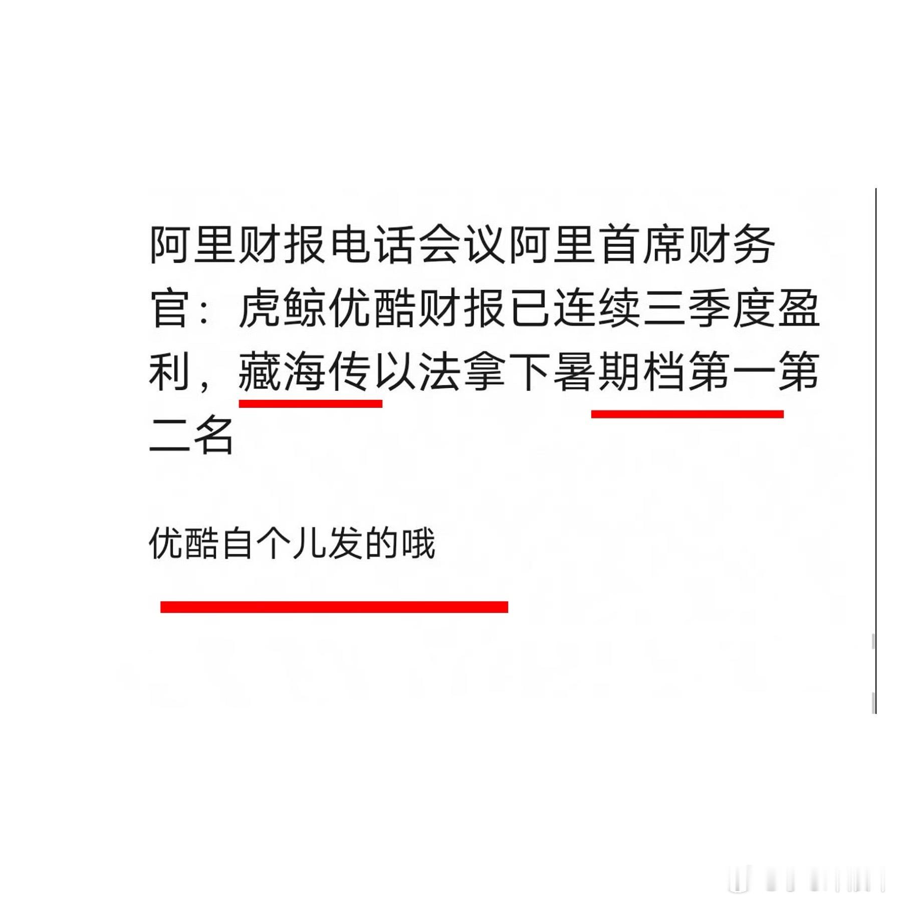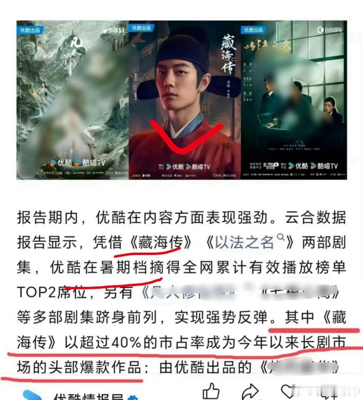号外,号外!新鲜出炉的!虎鲸优酷财报 已连续三季度盈利,~优酷👖再再再认证:肖战《藏海传》暑期档爆款王,“冷档高考季 却拿下暑期档第一☝🏻”!~全网累计有效播放榜单TOP1☝🏻以超过40%的市占率成为今年以来长剧市场的头部爆款作品(优酷亲自发的,不会还有同平台的剧 不服吧) ~