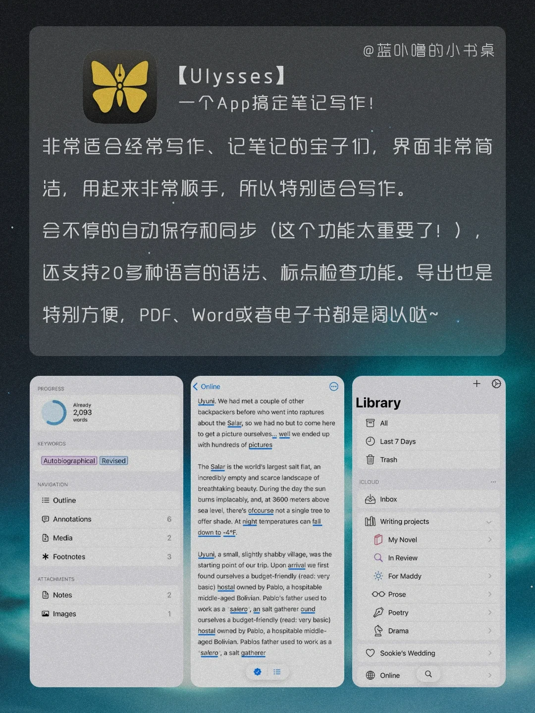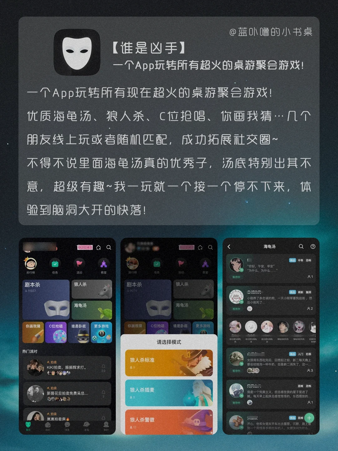 Hi,我是蓝卟噜的小书桌[派对R] 姐妹们咱就是说,真的太卷了啊❗️ 占内存小,功能强大,有的🆓 这么良心让别的App可怎么活‼️ 任何人不知道,我都会上伤心的ok⁉️ 💥Becord 💥谁是凶手 💥Boss说 💥Via 💥轻音社 💥Ulysses