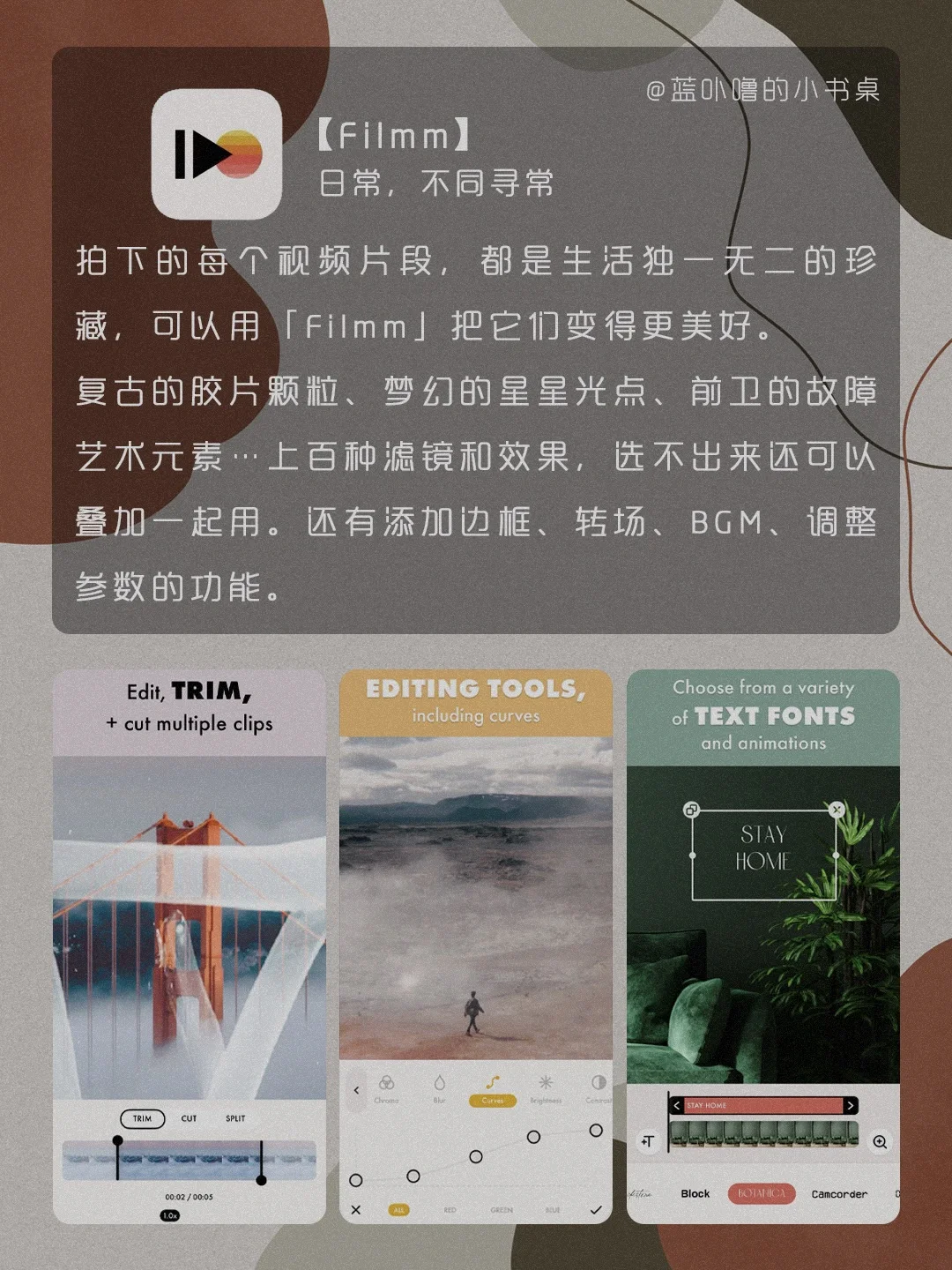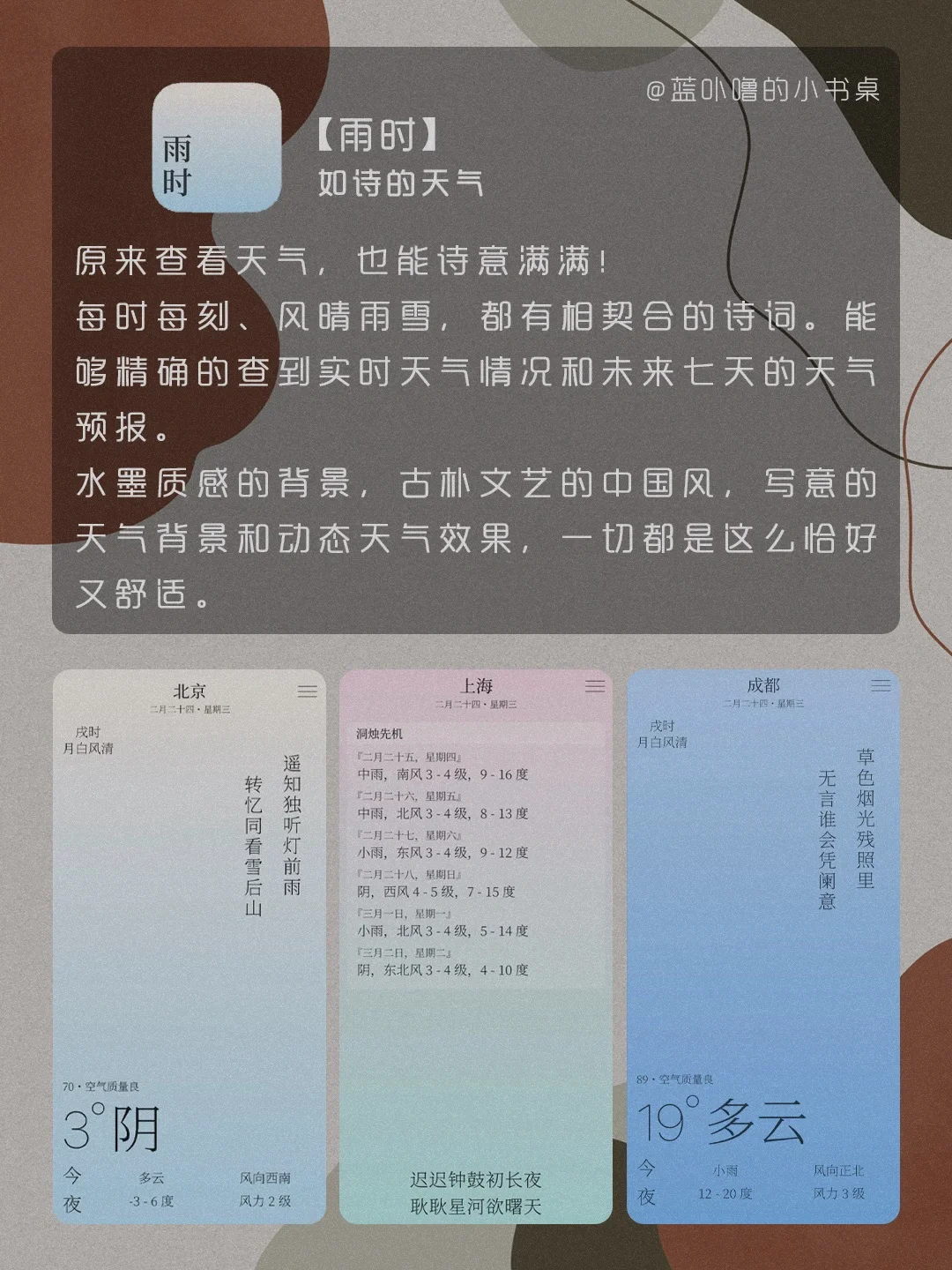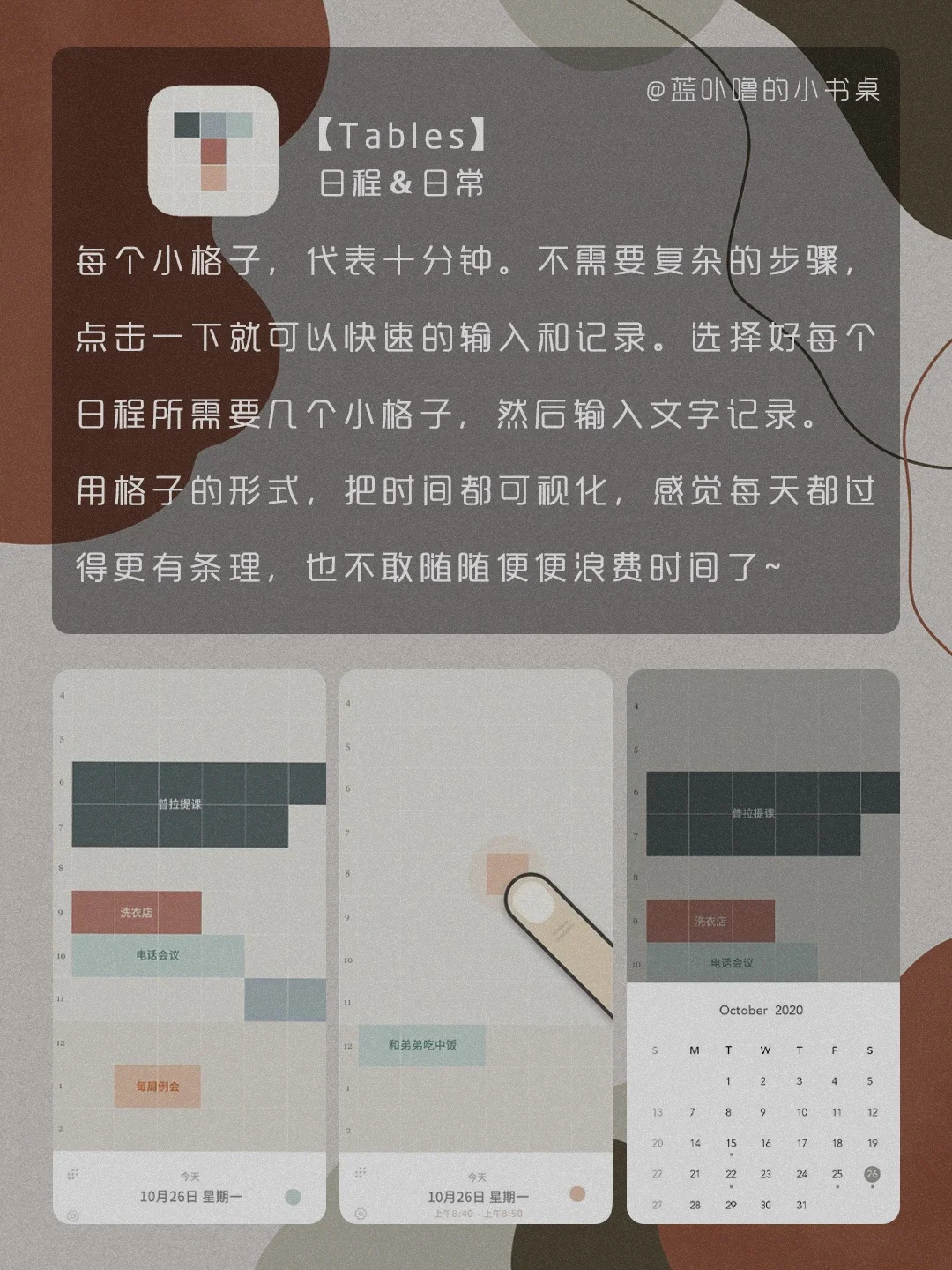 Hi,这里是蓝卟噜的小书桌[喝奶茶R] 日程、日记、天气、vlog…常用的App,也可以不一样一点 一点点文艺,一点点中国风,再来一点点莫兰迪色系🥰 🔖Tabkes 🔖雨时 🔖寄忆 🔖色采 🔖泼辣24 🔖DayGram 🔖Filmm