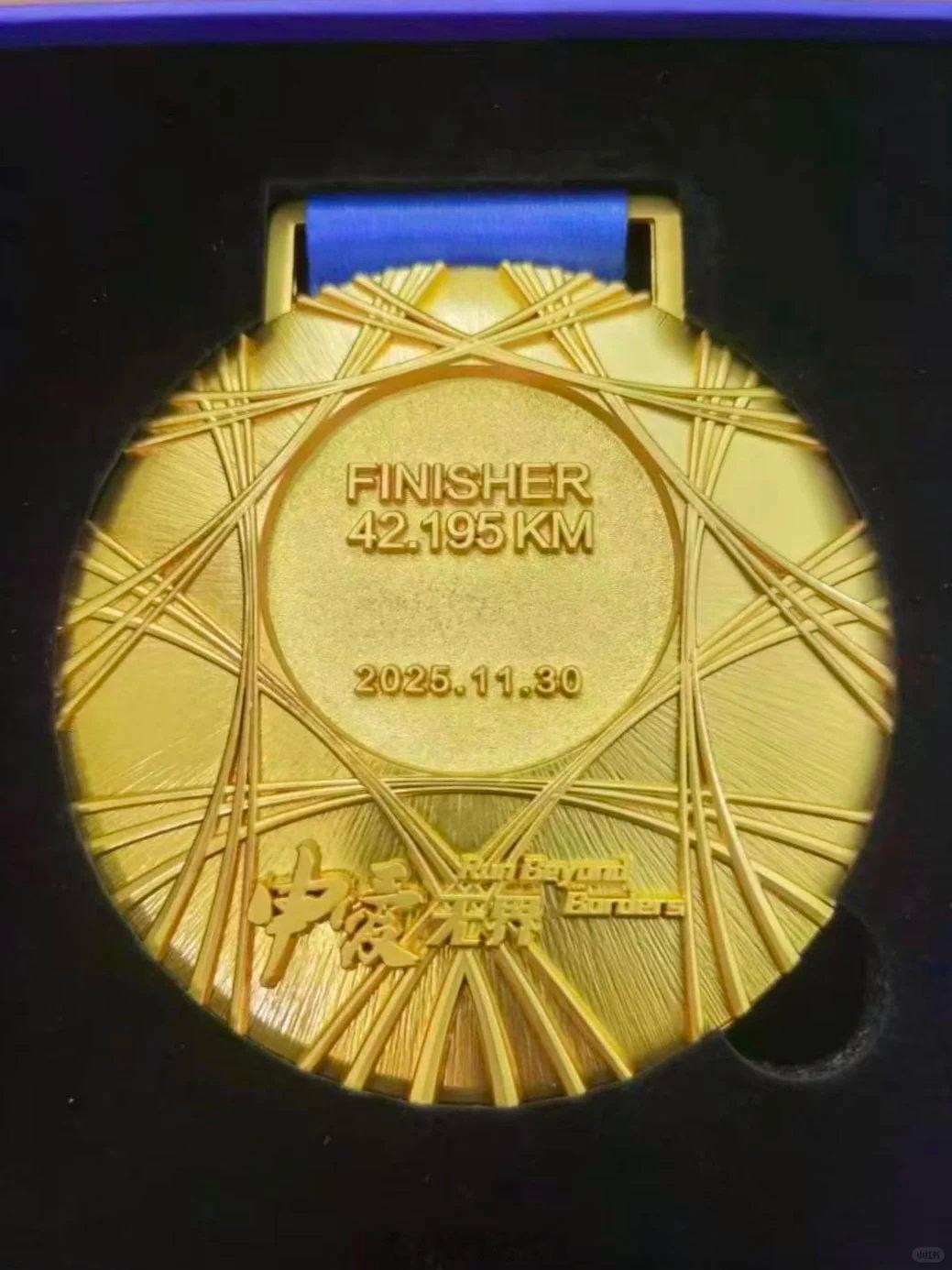 2025上海马拉松完赛奖牌(图3为网传照片)及分男女的参赛T恤、完赛T恤、破三风衣。