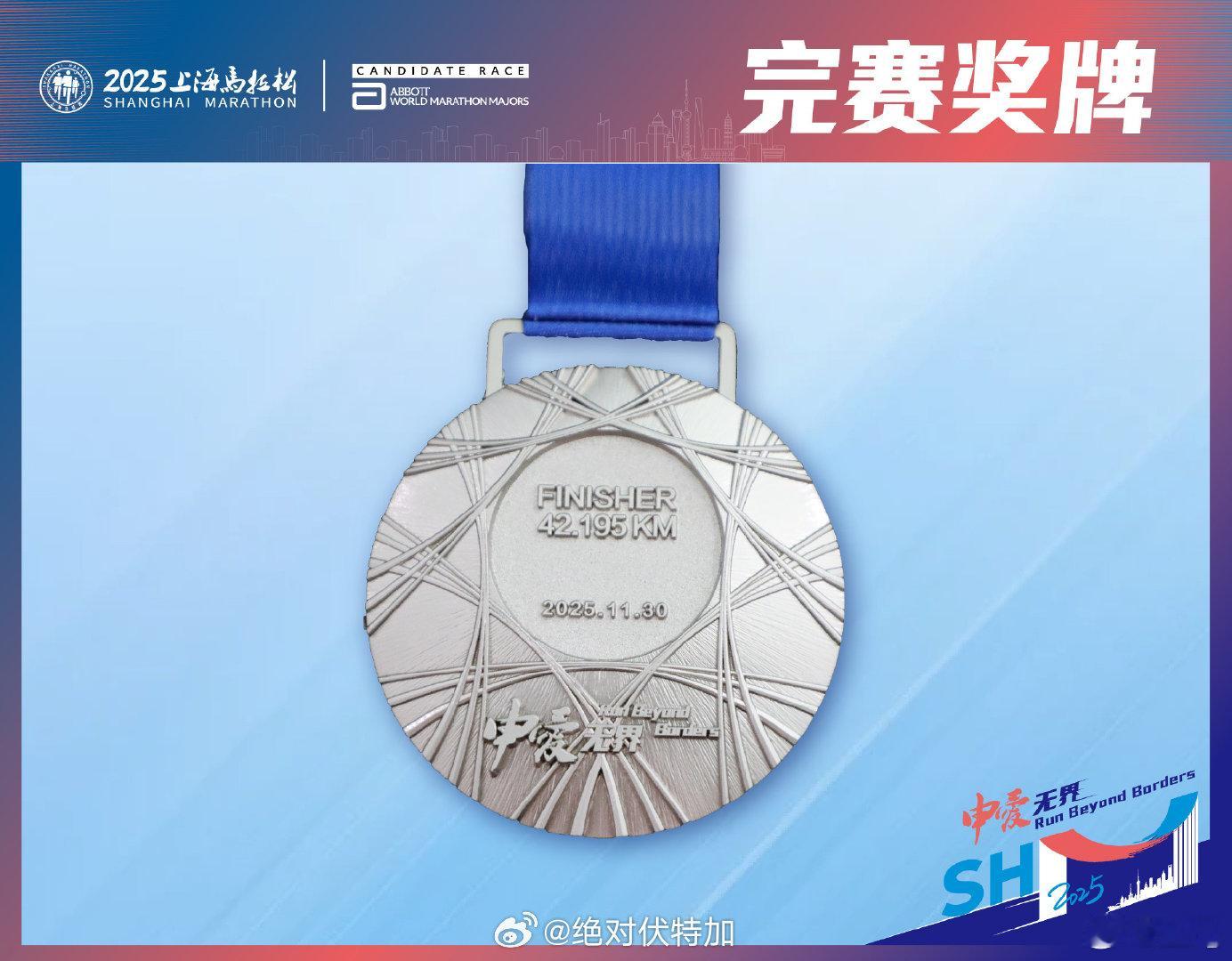 2025上海马拉松完赛奖牌(图3为网传照片)及分男女的参赛T恤、完赛T恤、破三风