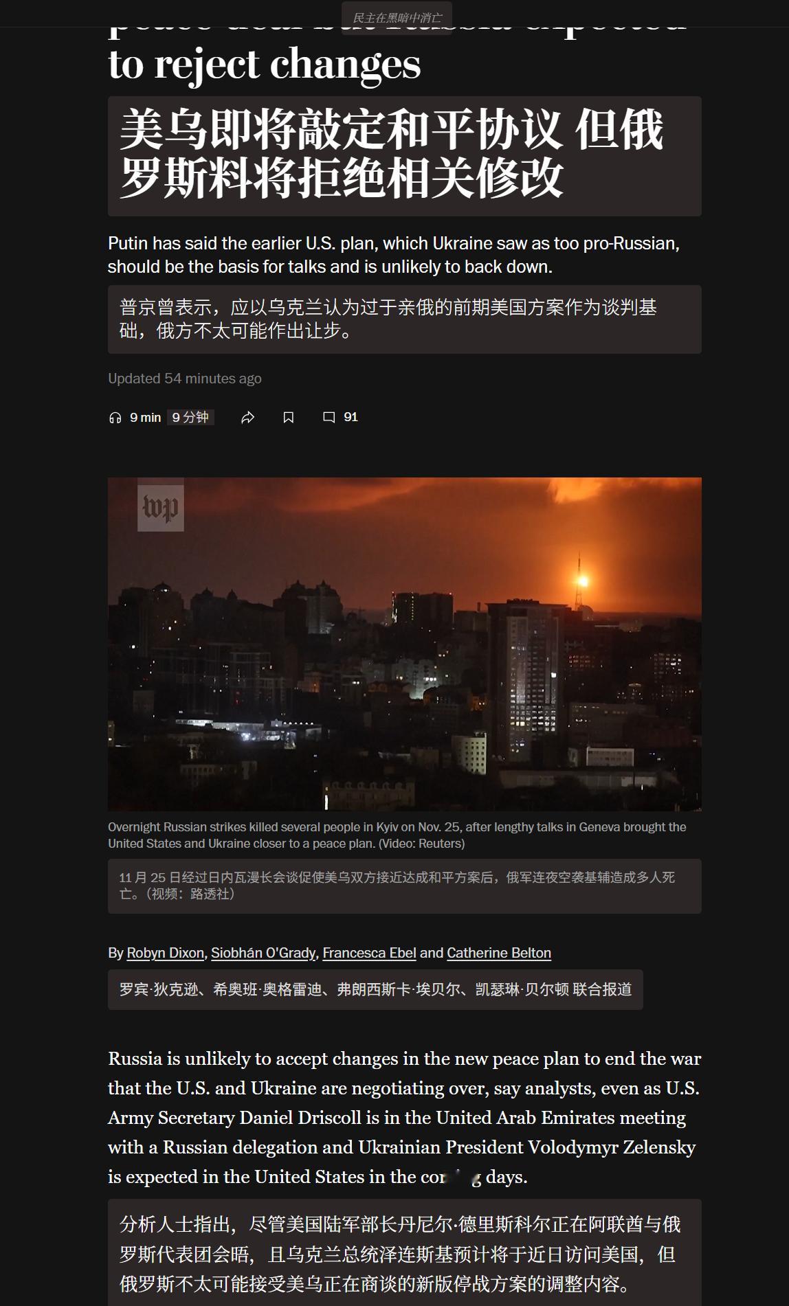 🔻华盛顿邮报说:“美乌即将敲定和平协议,但俄罗斯不太可能接受美乌正在商谈的新版停战方案的调整内容。”🔻消息人报说:“斯塔默:西方国家决定不再为乌克兰制定新方案。”🔻今晚我们到底是乌友还是俄友?给个准话,有点急。