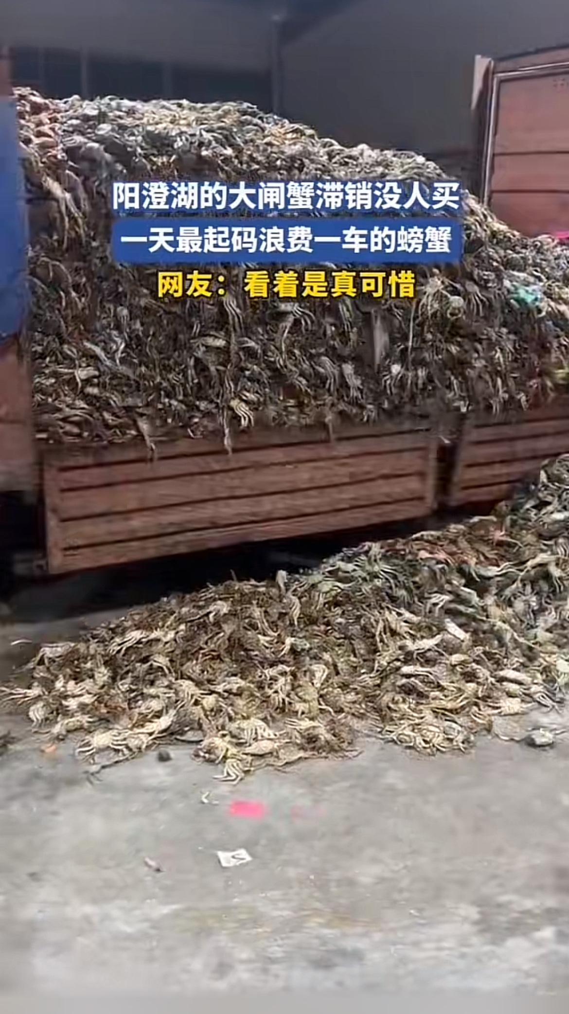阳澄湖大闸蟹滞销,一天浪费一车,太可惜了!秋天本是吃蟹旺季,往年这时候,大闸蟹备受推崇,价格也节节攀升。可今年却销量惨淡,蟹农都怪上了贩子。 其实,市场上大闸蟹的身影多了起来,水产摊到处都是鲜活挥舞钳子的螃蟹,但很多人却不愿买。一方面,大闸蟹产地众多,除了阳澄湖,顾城湖、太湖等地的螃蟹肉质也很肥美,消费者选择多了;另一方面,可能大家对大闸蟹正不正宗存在疑虑。希望能有办法帮蟹农解决滞销难题,让美味的大闸蟹不再被浪费。