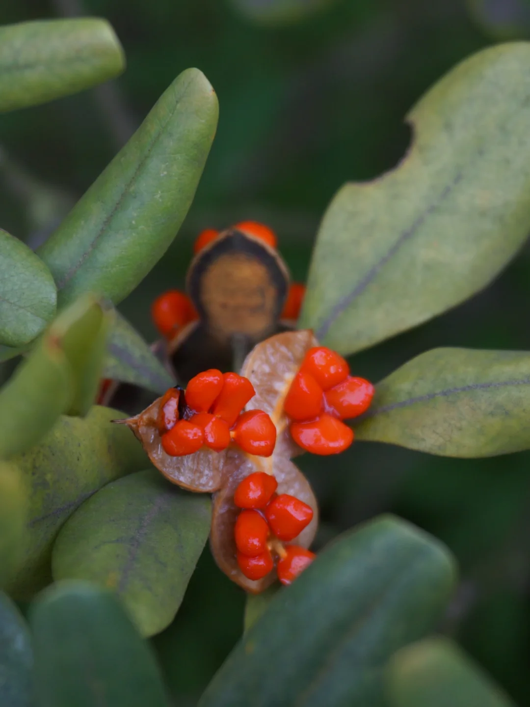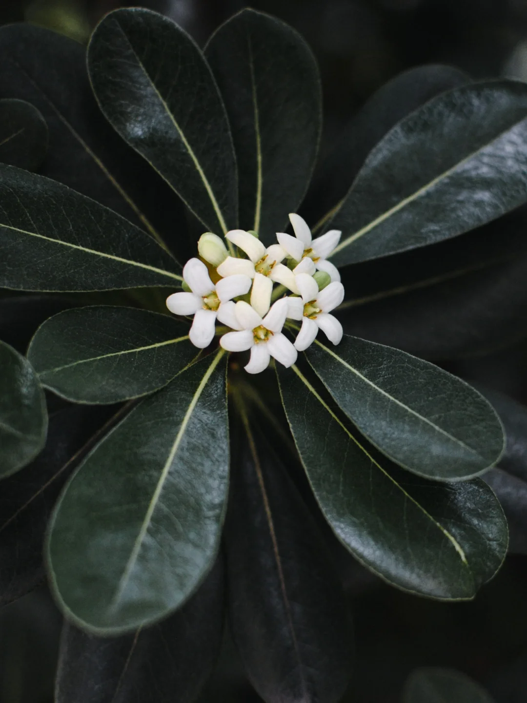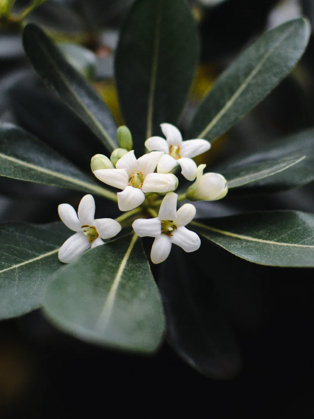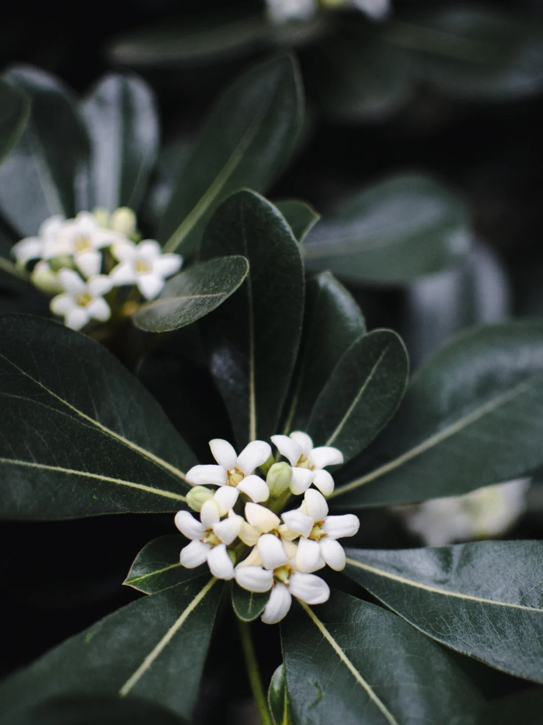 『海桐』 花期 4月中上旬 自然观察 海桐的花朵有五瓣,一开始是白色的,后面会慢慢变黄。海桐的花很香,春天开花的时候很多人都会留意到它。但是很多人都会忽略它的叶片,摸一下就会发现海桐的叶片很厚实,表面像涂了一层腊,还会发光大家猜猜这是为什么呢? 自然科普 海桐是绿化带植物的常客,萌发能力很强,所以经常被修剪成比较规则的造型。在春末时期会开出白色的小花,十几朵小花聚在一起成为半球形。到了深秋成熟的果实会裂开三瓣露出里面鲜红色的种子,种子上有粘液,可以黏附在鸟兽身上借此传播后代。