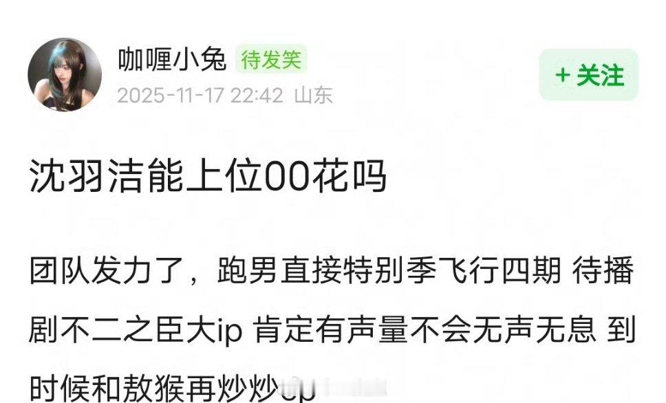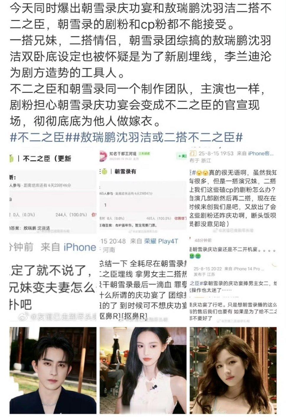 敖瑞鹏新剧不二之臣阵容🍉来啦,看着不错诶…11.27开机,12.4开机仪式!看了网传主演阵容,真的很拿不出手,这部剧能有现在的热度,完全靠敖瑞鹏单扛~你们说女主沈羽洁能上位00流量花吗?没有录制过任何一期正季跑男,直接就飞行4期特别季!朝雪录刚热播完,马上官宣同班底现偶,沈羽洁直接女二上位和敖瑞鹏二搭,朝雪录剧宣也被认为是提前给不二之臣埋线,到时候肯定和和敖瑞鹏炒前世今生二搭情缘。。。