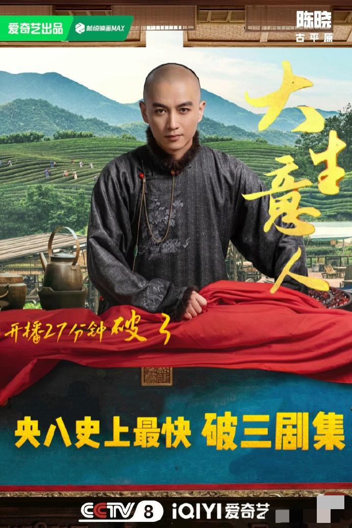 《大生意人》:陈晓主演的央8史上最快破3的剧集! 据说开播27分钟收视率飙破3%,刷新央8历史纪录,开播15分钟后猫眼关注度达3.29%,目前已经开创了国剧创新样本的注脚。 整个剧情紧凑、服装化妆和道具都很棒,超绝的审美,一个励志的商业传奇故事开始了。 陈晓很低调虽没有大肆宣传,剧中角色意气风发彰显实力。