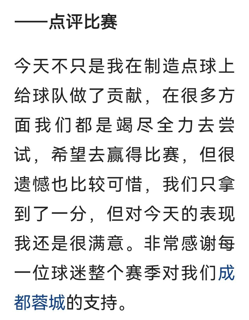 很多球迷看到周定洋谢场后面对球迷、面对镜头都哭了,这显然不是因为他对本场表现“很满意”。 在蓉城效力四个赛季,周队攻防都很亮眼,尤其是精神力很让人满意。本赛最后一个主场后哭了,这很可能是续约没有谈妥,老周不与蓉城续约,真令人惋惜……