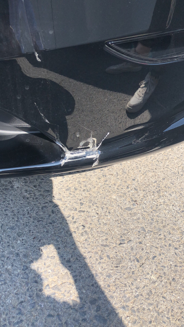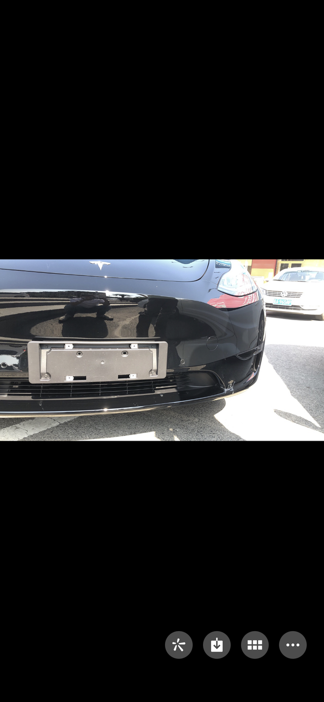 特斯拉真不耐碰 提车出来开了10分钟找了个肯德基带小朋友吃饭,点好餐后,发现忘记开哨兵了就去车里想研究大玩具,就看见车给人车门把保险杠顶裂了,有人比我这一血快吗