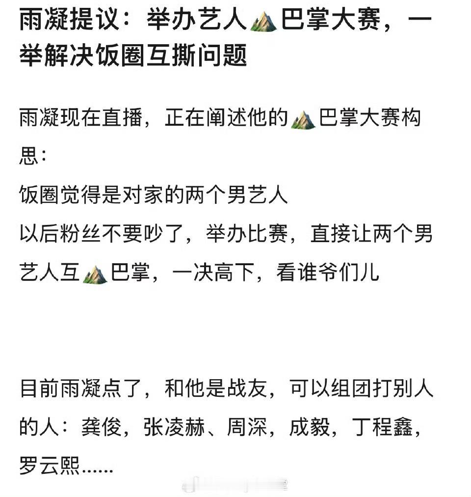 刘宇宁直播说可以举办艺人巴掌大赛,一举解决粉丝打架的问题哈哈哈哈哈哈哈!谁想看[震惊]