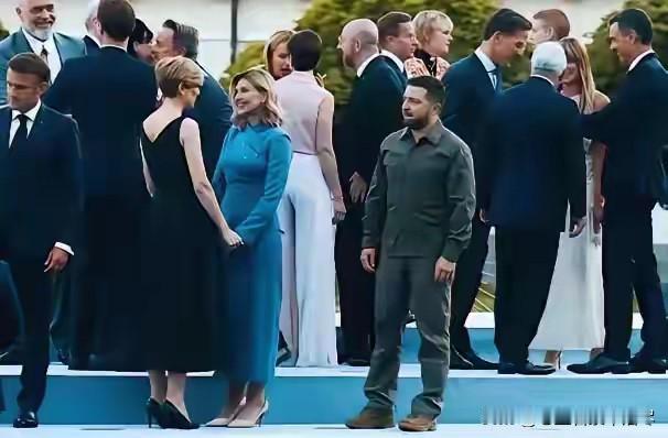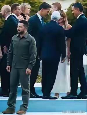 这是泽连斯基的处境,或许也是乌克兰的处境吧? 作为一个国家的总统,泽连斯基却像个小孩子一样孤独的站在人群中,而周围的人们则是穿着光鲜亮丽,在一起谈笑风生,仿佛都忽视了他的存在一般,再看泽连斯基在这样的场合,他的穿着就未免有些太过于随意了,和周围的人们对比显的格格不入,看着他孤独迷茫的站在那里,真的像极了是一个正在维持秩序的保安! 有谁能知道此时的泽连斯基,内心又想些什么呢?