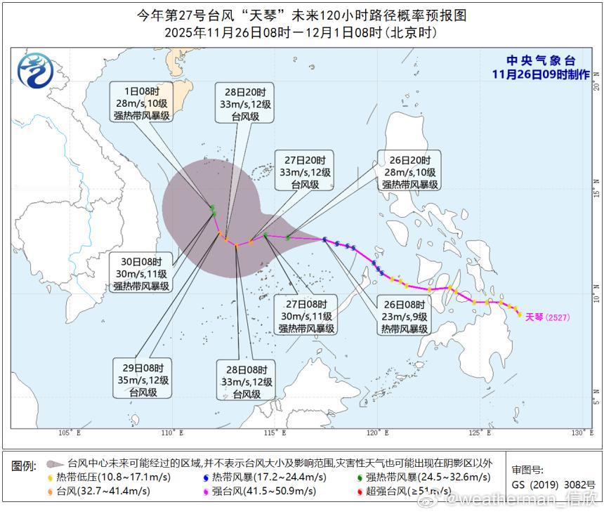 台风天琴 今天凌晨,台风天琴已经进入南海。未来总体可能是缓慢西行。今天到明天,海温较高,垂直风切变小,而且北侧高空出流也有利,强度可能会发展到台风级。但之后垂直风切变加大,海温下降,冷空气进入可能破坏暖心结构,导致强度减弱,有可能最后就在南海上消散。未来影响,主要是给南海带来持续的大风,并导致海南三沙市出现降雨。