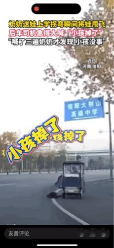 “太大意了”!孩子从车上摔下来,奶奶竟然不知!幸亏好心人帮忙,孩子没事! 河南信阳,廖先生早上开车去上班。在一个红绿灯路口右转弯时看见一位老人骑着三轮车,正在他的右方加速拐弯。廖先生就稍微放慢些车速,让老人先过去。 忽然廖先生发现从三轮车里滚出了一个小孩!原来三轮车左侧围档的拉链没有拉上,车子拐弯速度过大,小孩没扶稳,一下子就掉到地上。 看到孩子滚在地上,廖先生急得在车里大喊起来:“孩子掉了,孩子掉了!”然而冬天车窗都是关着的,开车的老人根本听不到。 孩子还摔在地上,万一有车过来,速度快点的话可就危险了。廖先生加速追上老人,再次大喊:“孩子掉了”。这次老人终于听到了,回头一看孩子不在车里。奶奶魂都吓跑了,赶快停车,急急忙忙跑到孩子身边。 真是万幸,孩子自己已经爬起来了,看上去没有大碍。 各位孩子的爸爸妈妈爷爷奶奶,冬季天冷,路上易结冰,骑车慢点,安全第一哦! 取材网络,侵删